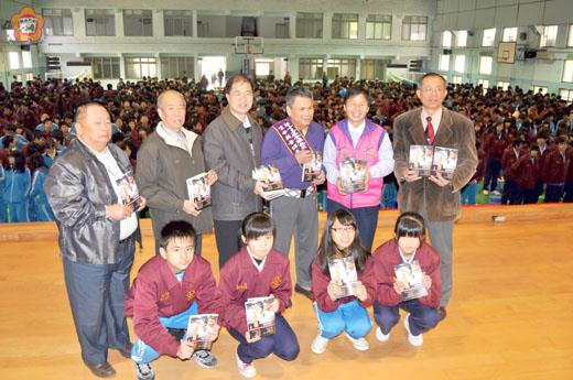 為宣揚「天生我材必有用」,周大觀文教基金會送愛到金門系列公益活動昨天舉行贈書儀式,除致贈上千冊熱愛生命圖書給金城國中,也頒發「讀出希望獎學金」獎勵27位金城國中優勝同學,安排獲獎同學分享閱讀心得,並邀請全球熱愛生命獎章得主施清文現身說法,縣長李沃士勉勵同學面對逆境要把沮喪化為進步的力量,讓大家熱愛生命、珍惜生命、人生充滿樂觀、充滿進取、希望和陽光。 這項贈書儀式於昨日上午八時在金城國中體育館舉行,在金門縣長李沃士、縣府教育局長李再杭、金城國中校長楊瑞松等人見證下,周大觀文教基金會創辦人周進華將基金會出版的「另一道陽光│陽光英雄施清文的傳奇故事」書籍1168冊致贈金城國中作為生命教育教材,也頒發另一道陽光徵文寫作優勝同學獎狀獎金,以獎勵金城國中洪菱、趙國翔、陳晏榕、許旭寧等27位學生,並邀請學生代表報告讀書心得,生命獎章得主施清文老師現身說法,與師生分享生命成長,鼓勵學子戰勝黑暗、迎向光明,引起熱烈回響。 縣長李沃士說,周大觀文教基金會專程到金門舉辦這項熱愛生命寫作的頒獎,對於創辦人與所有熱愛生命獎章得主們的付出表達高度肯定與感謝。尤其該基金會近幾年來對地區提供了學習的平台,讓同學在生命成長過程當中,能有機會來省思聆聽學習,而熱愛生命獎章得獎朋友的生命歷程是不容易。他說,今天也特別邀請生命獎章得主施清文老師現身說法,將其心路歷程體驗寫成一本書(另一道陽光│陽光英雄施清文的傳奇故事),並與朋友一起分享。 李沃士指出,在整個生命當中,確實好比同學現階段的年齡,是一轉型期,有人說是叛逆期,有人認為是成長過程必經,此期間確實是每位朋友在思想的吸收與成長,對於往後生命的發展絕對有相當大關鍵,看到文教基金會的用心再次表達感謝。同學們參與這次心得寫作投入相當的心力,同時加上平常寫作之練習才能脫穎而出,獲得此項獎項頒獎。李沃士勉勵同學時指出,生命的歷程中要每天都非常快樂是不容易的,最重要是要用什麼態度來面對不愉快,只要我們的心態是正向,就可把不愉快化成一股力量,面對逆境要把沮喪化為進步的力量,讓大家熱愛生命、珍惜生命、人生充滿樂觀、充滿進取、希望和陽光。 周進華說,周大觀文教基金會14年來,永續推動「全球熱愛生命公益活動」,提倡和自己好│熱愛自己的生命、和別人好│尊重別人的生命、和地球好│維護地球的生命。對走過戰爭烽火的金門,相信對生命感受最深刻,因此,送愛到金門,致贈熱愛生命圖書及邀請施清文演講,希望鼓勵年輕學子讀出生命、戰勝黑暗、分享光明。