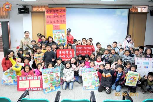 清明節假期即將到來,為防範火災的發生,金寧消防分隊昨日結合金寧婦女防火宣導隊至金寧轄區各校展開防災宣導活動,呼籲小朋友提醒爸媽「清明掃墓,小心火燭」,並遵守『四不(雜草不亂燒、菸蒂不亂丟、冥紙不飛揚、爆竹不燃放)』、『二記得(記得滅餘燼、記得收垃圾),共同愛護大自然的山林環境以及防火、防縱火、防範一氧化碳中毒、熱水器遷移補助事宜等宣導,並在現場懸掛宣導布條。 金寧消防分隊宣導列車駛進校園,昨日結合金寧婦女防火宣導至金寧地區各國中小宣導有關清明掃墓防火注意事項,居家防火常識、CPR急救技術,慎防一氧化碳中毒及如何避難逃生等防火防災課程,內容深入淺出生動活潑,受到師生的熱烈迴響。 金寧消防分隊指出,清明節期間民眾因慎終追遠焚紙祭祖,稍一不慎,極易引起林野火災,為推廣防火常識,加強民眾警覺,預防林野火災發生,請注意防火安全,並備水掃幕,以熄滅灰燼,預防林野火災發生。