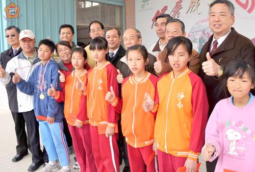 金沙學區運動會昨日上午開跑,省政府、縣政府、金沙鎮公所、金沙鎮代表會到場致贈獎金及飲料為選手加油。昨日共完成一百○三項田、徑賽事,計有安瀾國小五年級陳紘瑋,一百公尺破大會,成績十四秒二三,表現最亮眼。 金沙學區運動會昨日上午八時開跑,國小三年級至國中九年級男女選手共分成十二組,四百五十九位選手參賽,一天半的時間角逐一百四十一項田、徑賽事,首日一百○三項賽事中,計有安瀾國小陳紘瑋一人在小男五年級百米賽事,以十四秒二三的成績,刷新學長黃聖翔所保持的十四秒四一。今日上午十一時將進行閉幕。 昨日上午福建省政府秘書長曾華德,到場致贈比賽補助金新台幣一萬元。縣府主任秘書盧志輝、教育局局長李再杭到場觀戰為選手加油。金沙鎮代表會主席率代表會同仁贈送礦泉水給學區各校;金沙鎮鎮長陳昆第則致贈各校運動會補助款,並聯袂頒獎給學區參與作文競賽表現績優同學,計有,安瀾國小陳丕堯、何浦國小廖庭暄、金沙國中李應輝(原述美國小)、金沙國中陳韻璇,每人頒發獎學金壹仟元。 昨日學區各校學生由導師帶領下到場觀戰,上午金沙國小學生準備道具到場加油,成為醒目焦點;競賽最激烈的屬壓軸登場的八百公尺接力賽,場邊擠滿圍觀的師生,呼喊加油聲響一點也不輸給場上衝刺的選手。 金沙學區運動會今日上午八時起仍有半天賽程,將於中午十一時三十分舉行閉幕。