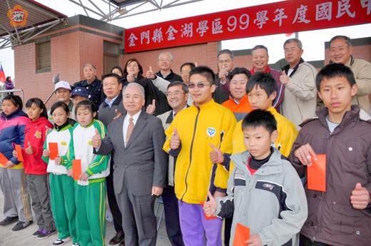 金湖學區99學年度國民中小學聯合田徑賽已於昨日閉幕。本屆聯合田徑賽破大會紀錄者計有開瑄國小蔡卓頻的五男200公尺、正義國小林筱容的五女100公尺和五女跳遠等八項八人次;破全縣同組最高紀錄共有一項一人,那就是金湖國中陳廷的九男鐵餅。 為期兩天的聯合田徑賽是在三月二十五日、二十六日舉行;總共進行一百五十場預賽及決賽,參加的選手共有六百人。 在田徑賽中破紀錄的選手包括:湖中905陳廷的九男鐵餅(成績45.1;全縣紀錄40.16)。803陳成福的八男100公尺(成績11"83;大會紀錄11"86)。 開瑄蔡孟臻的五女100公尺(成績14"21;大會紀錄14"49)。開瑄蔡卓頻的五男200公尺(成績29"03;大會紀錄29"22)。開瑄陳瑋嬣的五女鉛球(成績7.23公尺;大會紀錄7.10公尺)。 正義林筱容的五女100公尺(成績13"90;大會紀錄14"49)。正義林筱容的五女跳遠(成績4.32;大會紀錄4.09)。柏村謝孟忻的四男100公尺(成績14"43;大會紀錄14"80)。 其中,開瑄蔡卓頻是一個早產兒。他母親懷孕卅六週生下他時,重量只有二千三百公克。如今在同學區的同齡者之中,他的身高與體育表現都顯得高人一等。在這次運動會中,他參加五項比賽得了五金;蔡卓頻的母親吳彩惠表示,這要歸功於運動和營養。 金湖學區國民中小學聯合田徑賽舉辦的目的是為了推行學校體育,培養團隊榮譽;主辦單位包括:金湖國中、金湖國小、開瑄國小、正義國小、柏村國小、多年國小。 聯合田徑賽的團體成績如下: 國小四男組-第一名柏村國小、第二名金湖國小403、第三名正義國小。 國小四女組-第一名柏村國小、第二名金湖國小403、第三名金湖國小402。 國小五男組-第一名開瑄國小、第二名金湖國小503、第三名柏村國小。 國小五女組-第一名正義國小、第二名多年國小、第三名開瑄國小。 國小六男組-第一名柏村國小、第二名金湖國小603、第三名金湖國小604。 國小六女組-第一名開瑄國小、第二名金湖國小602、第三名金湖國小603。 國中七男組-第一名703班、第二名702班。 國中七女組-第一名703班、第二名704班。 國中八男組-第一名802班、第二名803班、第三名805班。 國中八女組-第一名801班、第二名802班、第三名803班。 國中九男組-第一名901班、第二名902班、第三名904班。 國中九女組-第一名902班、第二名901班、第三名903班。 精神總錦標國小組-開瑄國小。 精神總錦標國中組-701班、803班、901班。 昨天的閉幕典禮是由大會會長吳啟騰(金湖國中校長)主持;出席或列席者包括金門縣議長王再生、金門縣教育局長李再杭、金湖鎮鎮長蔡西湖、開瑄國小校長李錫南、正義國小校長陳順德、金湖國小校長翁明國、柏村國小校長陳為學、立委陳福海服務處主任黃文成、金門校外會督導徐建宇……等。 吳啟騰認為選手們在各方面都表現得可圈可點,他希望學生從比賽中學到堅強、團結、榮譽、責任;養成運動習慣,推動全民體育。王再生希望破紀錄的選手,繼續加油,努力參加全國性的比賽。蔡西湖祝福明年比今年更好。