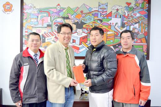 金城鎮公所推薦優秀青年陳國勇獲選為金門縣社會優秀青年代表,將於今(廿七)日赴台參加中華民國各界慶祝100年青年節「全國社會優秀青年代表表揚暨青年菁英會活動」,金城鎮長石兆瑉昨日接見全國優秀青年代表陳國勇,對他敬業樂群之精神及從事專業領域具體優秀表現表達肯定與敬意,特別在他赴台接受全國表揚前致贈程儀壯行色。 金城鎮一百年社會優秀青年評選,經由評審委員會公平公開進行評選後,當選名單業已出爐,計有西門里陳國勇(擔任金中男籃球隊教練及帆布行店員)、西門里戴如妮(服務金門高中教師兼教學組長)、東門里王志政(服務銀河系電腦中心工程師)、南門里歐陽勳(警專學校99年特班受訓生)、北門里楊鵬安(北門社區營造中心專案助理)、金水里黃國龍(縣農會穀物乾燥中心過磅員)、賢庵里盧俊傑(服務縣警察局督察室)、古城里陳敬家(兆豐銀行行員)及珠沙里薛又文(水電工)等九位青年,以優秀事蹟脫穎而出,當選為金城鎮優秀青年。其中西門里陳國勇推薦當選金門縣社會優秀青年,將於廿八日參加在台北市劍潭海外青年活動中心舉行全國社會優秀青年代表表揚暨青年菁英會活動,並安排前往總統府參觀,馬總統接見及訓勉。 金城鎮公所評選出鎮內等九位優秀青年,將於三月廿九日下午六時在葡京餐廳舉辦慶祝餐會予以頒獎表揚。石鎮長說,接受表揚的優秀青年都是在各個工作領域為社會服務、認真負責、表現優異者,可說是青年朋友的模範,社會菁英,他們平常在工作崗位上盡職負責,值得大家來學習效法,希望透過表彰活動,激勵社會中更多青年朋友見賢思齊,為社會和諧發展與地方的繁榮貢獻心力。 當選全國優秀青年代表陳國勇,家住西門里金城新莊,目前在金門高中擔任男生籃球隊教練,99年度體育節金門高中推薦為體育績優教師;97年度曾帶領金門高中男生籃球隊打出全國乙組高中聯賽第五名亮眼成績,今年二月將再次挑戰前年的成績,擔任教練以來不辭辛勞,對學生課業、人格、禮節多非常注重。職場工作之餘投入及推廣運動不遺餘力,參加地方及全國各項比賽獲獎無數,16歲就拿下88年金城盃軍民籃球賽生平第一次優秀球員,90年高中畢業後,就常常代表金城鎮、金門縣參加地方、全國性、兩岸三地籃球比賽、壘球等運動項目。