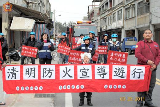 清明節是民族掃墓慎思追遠的季節,金寧消防分隊特於昨日利用週末假期號召金寧義消分隊及金寧婦宣分隊等志工共同組成一支鐵馬遊行宣導隊伍,至轄區街道村里巡迴宣導遊行,藉以提醒少民眾應有防火之警覺性,吸引不民眾駐足觀看,既可健身又達防災宣導之效果。 清明節期間,民眾常因燃燒冥紙、雜草,及未確實熄滅餘燼,易引發林野火災,為使得民眾都能平安順利的完成清明掃墓的重大民俗活動,並增進民眾的防火觀念。金寧消防分隊昨日結合由金寧義消分隊唐惠志、許志堅、李冠杰、余建南及金寧婦宣分隊分隊莊素娥、蔡素芬、蔡麗雲、李瑞治、周藝南等共同組成一支鐵馬遊行宣導隊伍,隊伍首由婦宣分隊長莊素娥以擴大器沿街廣播宣導,續由義消副分隊長唐惠志、幹事許志堅等領軍騎乘鐵馬懸掛標語之鐵馬隊,後由金寧消防分隊以消防宣導標語壓軸至轄區街道村里遊行宣導民眾清明祭祖掃墓注意防範火災,全民學CPR。 金寧消防分隊呼籲鄉親朋友,每年值此時節,由於上山掃墓焚燒香燭、紙箔易引發山林火警,為防患未然應注意用火安全,共同做好火災預防工作,再次提醒民眾應注意以下事項: 一、燃燒冥紙應注意風向、並防止飛火。 二、燃燒冥紙應與雜草及易燃物隔開防止延燒。 三、燃燒冥紙或雜草完畢後應確實熄滅餘燼。 四、掃墓時可攜帶小容器裝水或寶特瓶裝水以撲滅餘燼。 五、消防分隊將會於各掃墓區域入口、設給水站及寶特瓶水、以作為撲滅餘燼用水,居民可隨時取用。消防局表示請民眾能遵守上述幾點注意事項,以維護民眾生命財產安全,並預防清明掃墓引發燒草火警之發生。