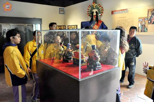 金湖國中特教班十二位學生,昨日參觀文化園區金門歷史民俗博物館,成為繼金寧中小學、金沙國中(七年級)後第三批前往參觀的學生團體,特教生手牽手,表現良好秩序在解說員帶領下,瞭解金門民俗風情,學生見到現場擺置的神像,雙手合十拜拜;見到喜洋洋的春聯大喊過年,為靜態的展示增添趣味。 金湖國中特教班十二位學生,昨日上午在老師鄭榮璋、特教助理員、駕駛等陪同下,到文化園區,參觀金門歷史民俗博物館金門文物展,從海洋、金門民俗、宗教信仰、金門人物等,解說員細心介紹,學生手拉手、秩序良好,藉由無障礙設施協助下,無礙地穿梭各展覽室參觀。 學生表達直接,見到展場內的七爺、八爺拍拍胸脯表示害怕;見到平常家中有安置的神像則虔誠雙手合十作拜拜狀;特別是看到喜洋洋的春聯,開心的說過年;對於現場仿模範街的街景也引起他們好奇形容,好像在金城。 鄭榮璋表示,現場展覽宛如金門的縮影,對於學生來說因為種種不便,在日常生活之中無法樣樣參與其中;過去常聽學生說拜拜、熱鬧,只是單從課本及圖片上的介紹,不如帶她(他)透過實體的參觀,幫助學習;而且展覽環境很適合他(她)們,資訊多元,足以幫助學生對金門生活過去和現在有更進一步認識。