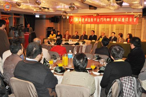 金門縣議會與基隆市金門同鄉會座談聯誼會昨天舉行,由議長王再生主持;基隆市金門同鄉會理監事出席相當踴躍,並於會中提出醫療、海空交通改善和補助建議。而,基隆市長張通榮同議長黃景泰也參與,為此次座談聯誼會增添光彩。 縣議會與基隆市金門同鄉會座談聯誼會昨天下午六時假基隆市長榮桂冠酒店五樓舉行,基隆市金門同鄉會理事長張礽成和全體理監事出席與會,列席及與會縣議員有許玉昭、洪麗萍、林孫全、唐麗輝、陳滄江、王碧珍、許華玉、許燕道,以及議會秘書長許丕贊等人。 縣議會議長王再生致詞表示,為了服務旅基隆鄉親和發揮鄉親情誼,基隆市金門同鄉會在去年成立,十分不容易。他說,目前在台金門同鄉會約有十七個之多,尚有五個縣市未成立同鄉會,希望將來均能全部設立,成為支持金門家鄉的一股新力量。 王再生說,基隆的鄉親在外打拚,並有成就,為金門增光。他說,在兩岸和平發展之下,目前金門有很多重大建設,希望鄉親除了回鄉走走之外,也能投入家鄉的建設行列,共為金門發展盡一份心力。 在座談會中,基隆市金門同鄉會出席人員除感謝金門縣議會前來為鄉親加油、打氣外,也提出三項建議:{1}建議縣議會督促盡快的將金門醫療養生島做起來,以照顧金門鄉親的健康。{2}建議縣議會為旅台金門鄉親爭取八折機票優惠,鼓勵鄉親和下一代時常返鄉,並減少經濟的負擔。{3}縣府三節返鄉包船,除了台中港外,也能在基隆港和高雄港開闢包船航線,以利鄉親返鄉。 王再生在會中,也贈送「八駿雄風」、金酒和伴手禮給基隆市金門同鄉會與理監事;同時,他也回答鄉親建議!在聯誼會活動,王再生和議員與鄉親閒話家常,聊聊家鄉發展景況,場面十分的溫馨和歡樂。