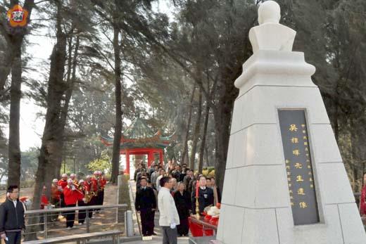 昨為吳稚暉先生147歲冥誕,縣長李沃士率同金門各界在金城鎮水頭「稚暉公園」吳稚暉銅像前舉行冥誕祭典,緬懷這位五十八年前海葬金門的一代哲人的豐功偉績。而吳稚暉裔孫吳湘琪、吳嘉騏,也專程趕來金門參與祭典,表達對「先祖」的追思。 公祭儀式昨日上午九時三十分許在金城鎮水頭村郊稚暉公園舉行,由縣長李沃士擔任主祭官,吳稚暉第4代孫女吳湘琪、第5代裔孫吳嘉騏為陪祭官,與祭者包括有縣府各局室主管、鄉鎮長、學校校長,金門縣吳氏宗親會理事長吳長壽也率同宗親代表到場參與祭典。 李縣長遵循古禮,向吳稚暉銅像上香、獻花、獻香茗、獻發粿、獻果品、獻金帛等,並率領與祭人員行三鞠躬致敬,追懷一代哲人,場面莊嚴隆重。 此次吳稚暉第4代孫女吳湘琪、第5代裔孫吳嘉騏,也特別從台北、加拿大趕來金門參與祭典。今年首次來金門與祭的吳湘琪說,感謝金門對她先祖的崇敬,希望先祖的精神能傳承下去。 而33歲的吳嘉騏今年第3次專程從加拿大來金門參與祭典,他表示,只要時間安排允許,每年都會來金門祭拜「太公」,要讓太公的精神永流傳。吳稚暉先生為江蘇武進人,生於民國前47年,字敬恆,為儒學宗師。其一生致力革命救國、文化事業、推動國語文運動,並不熱衷仕途,深受國人尊敬,曾為蔣故總統經國先生的業師。民國42年10月30日吳稚暉病逝於台北,臨終時囑咐海葬於金門海域,同年12月1日,蔣經國以中國國民黨中央委員身分護送骨灰海葬於金門水頭灣,並建稚暉公園,縣府每年於吳稚暉先生冥誕舉行公祭,追懷這位功在國家的哲人。