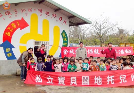 春暖花開是出遊好時節,私立寶貝園地托兒所五十名小朋友,步行前往金城鎮公所進行戶外環保教學活動,參觀金城鎮資源回收小站、以及環保車輛出勤工作的情形,金城鎮公所主任秘書黃耿銘並代表鎮長石兆日給予熱情的接待、解說,希望讓小朋友們了解每日產生的垃圾,經過許多繁瑣程序才得以處理完成,也期盼小朋友做個環保小尖兵,把環保觀念帶回家裡,營造優質的生活環境。 寶貝園地托兒所五十位小朋友前往金城鎮公所進行環保戶外教學,並由鎮公所主秘黃耿銘、環保課長陳水友等人在場熱忱款待。黃耿銘除了代表鎮長石兆瑉表達對小朋友的歡迎之意,並引領著小朋友參觀資源回收小站以及參觀環保車輛等,並宣導垃圾三分類,希望小朋友也可以協助家庭輕鬆EASY做環保。 陳水友並向小朋友說明垃圾的處理流程,以及各式各樣不同的工作車,例如:垃圾車、灑水車、資源回收車等等,他並指出,每日家戶所產生的垃圾,必須經過環保人員動用車輛、機械等繁複程序,協力合作才清理完成。近年來,極力推行「垃圾減量」和「資源回收」的工作,每年金城鎮也舉辦資源回收抽獎活動,希望養成資源分類、垃圾減量的良好習慣,共同維護居住生活環境,他並期盼小朋友做個環保小尖兵,把環保觀念帶回家裡,營造優質的生活環境。 對於在垃圾車上工作的環保人員們,小朋友說,這些叔叔、阿姨們要忍受惡臭,沿街幫大家收垃圾,非常的辛苦,為了減輕他們的負擔,回家也要幫忙先做好垃圾分類,減少垃圾量,這樣才能有乾淨的生活環境。 為勉勵小朋友在寓教於樂的環境下,體認環保的重要性,鎮公所也贈送太陽能手電筒鑰匙圈予來訪的小朋友,讓小小賓客為這趟深富環保教育意義的戶外教學活動,留下給美好的回憶。