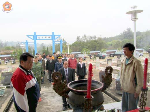 清明節將屆,烈嶼鄉100年春祭諸宗姓先靈暨陣公亡將士英靈大典,昨日上午舉行,鄉長洪成發帶領各界虔誠敬祭,以表達對先賢先民暨陣公亡將士之敬思。 烈嶼地區春祭(清明)公祭先靈大典,先後在烈嶼民眾公墓、軍人公墓舉行,由烈嶼鄉長洪成發主祭、縣議員洪麗萍、鄉代表會主席洪若珊、烈指部指揮官張景陽、分駐所所長王得志及各機關主管代表、學校校長、鄉公所各課隊主管、各村村長等人與祭,過程莊嚴肅穆。 另適值辛卯年清明時節,為感念諸宗姓先靈開基恩惠,鄉公所也於昨日在烈嶼鄉民眾公墓慈恩堂舉辦春祭(清明)超荐法會,超薦諸宗姓先靈,功德回向過往,往生淨土。很多民眾參與法會,虔誠的拜拜,表達對先人的孝思。