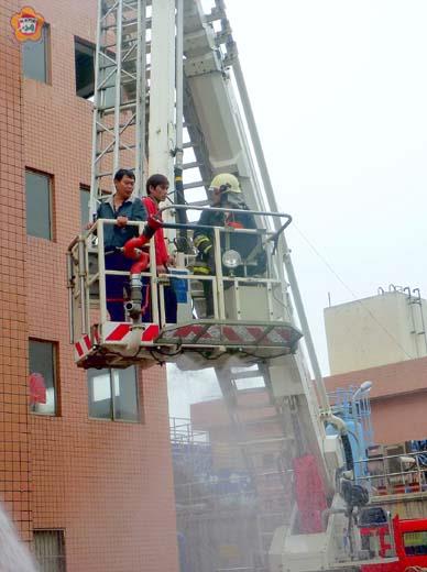為加強分隊同仁救災默契、器材操作熟稔度及緊急應變能力,提昇火災搶救技能,金城消防分隊昨天舉辦一場火災搶救組合演練,模擬情境為金酒倉儲大樓因施工不慎導致火災,在接獲報案後,立即出動展開搶救行動,整個演練過程詳實逼真,猶如真實救災現場一般。 金城消防分隊的火災搶救組合演練昨天上午十時,假古城里金酒場區舉辦;此次演練結合金城義消、金寧消防分隊及酒廠員工組成通報班、滅火班、避難班聯合演習,期增加彼此默契及災害救援效能。 火災搶救組合演練現場模擬倉儲大樓因施工不慎導致火災,由自衛消防編組通報班人員向金門縣消防局勤務指揮中心報案求救,金城分隊獲報後出動消防車、雲梯車、水庫車、救護車,義消人員共二十三人,並同步派遣金寧分隊車組抵達現場支援救災行動。 經現場指揮官金城分隊分隊長莊濠綱初期研判,大樓內有多名員工受困,立即下達指令展開火災搶救部署作為;由於大樓斷電無法有效進入室內,立即指派一組人員先以圓盤切割器,破壞鐵捲門以利部署水線搶救。另一組搶救人員操作雲梯車將受困大樓內員工救出,由救護人員進行初步生命徵象評估,並予以必要之急救措施。 其演練的另一組人員搜索各樓層有無人員受困,隨後金城義消副分隊長許績燈率義消汪成飛、許恒商、許方誠、王蓁辰協助部署水線及器材操作救援,整個演練過程詳實逼真,猶如真實救災現場一般。