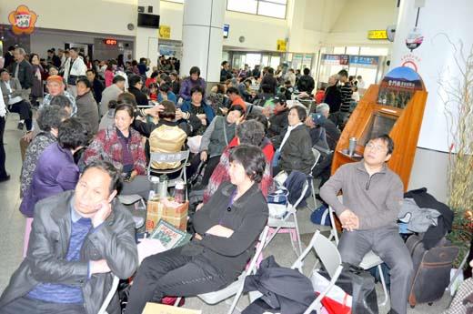 受到春季濃霧的影響,金廈小三通一停航就停了兩天半,直到昨天中午過後太陽露臉,始恢復通航,旅客擠爆水頭碼頭旅客通關中心,往返廈門、泉州的客船幾乎是班班客滿,疏運旅客逾五千一百四十餘人。 金廈航線小三通係自十九日起因濃霧開始停航,金泉航線則在二十日起也跟著停擺,造成近千名中轉的大陸觀光客、台商等被迫滯留。因此,昨天一大早水頭碼頭通關中心即湧現搭船人潮。 在候船時,大陸觀光客有的打起牌來、或是透過筆電看影片,也有的鬧中取靜看小說,或是三五成群聊天,打發等船的時間,在水頭碼頭兩岸也擠滿了人,望著霧茫茫的金廈海域,歸心似箭,但船不開也是無奈何! 來自彰化新港的觀光團要到湄洲拜媽祖,也在通關中心門口前跳舞唱歌,她們說是在祈求老天趕快放晴,能夠順利的上「陸」。 而,等船旅客抽取號碼牌候補船位,昨上午十時不到,就有一千二百多人要求補位;而且,隨著台金航線班機開航,中轉上陸旅客愈來愈多,擠爆通關中心大廳,但是天公仍不作美,一整個上午仍是霧茫茫,無法開航,急壞候船客。 所幸,在中午過後陽光露臉,濃霧逐漸散開,大陸泉州石井港首先在昨上午十一時三十分通報開港,廈門東渡碼頭於中午十二時十分、五通碼頭於下午一時先後跟進開港,兩岸客船對開,全力疏運旅客。 根據統計資料,水頭開往東渡、五通和石井的客船,至昨天下午五時前都是班班客滿,大陸溫洲觀光團一百餘位團員已經在金門等了三天兩夜,他們興奮表示「終於有船可搭,可以回家了」。 金門往廈門、泉州班船滿載,從大陸的來船也是班班客滿,旅客包括金門鄉親、中轉台商和大陸觀光團,連金門縣交通旅遊局長楊鎮浯也是受困廈門,趕搭五通到金門頭班船返金上班。 金門縣港務處表示,金廈泉小三通全天排定往返總共四十二班船,昨天受濃霧影響開航二十四班船,疏運旅客五千一百四十七人;其中,入境二千七百九十八人,出境二千三百四十九人。