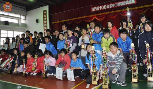 金門縣100年中小學羽球錦標賽今年共有二百四十位選手參加,隨著羽球運動風氣的開展,關心羽球者企盼引進專業師資,讓水準可以提昇。 為期兩天的金門縣100年中小學羽球錦標賽已於昨天(三月二十日)閉幕。在閉幕典禮中,由金門縣政府主任祕書盧志輝、金門縣羽球運動委員會第六屆主任委員黃國平、金湖國中校長吳啟騰等,頒獎給得獎的個人及團體。黃國平表示比賽已經順利、圓滿完成;他希望大家打得健康,打得愉快。 盧志輝向得獎者致賀;他說,這是苦功、努力的驗證。他肯定金門縣羽球運動委員會的努力,讓這項運動可以由成人往高中職、國中及國小紮根。 盧志輝表示,羽球可以培養體力與智慧;希望每一個人可以經常運動,養成習慣。他希望金門的羽球能繼續提昇水準,到臺灣、大陸各地參加各種比賽。 這次比賽,高中職女子組冠軍呂佳穎認為她會得到最後的勝利是因為沈得住氣。高中職男子組冠軍王采晨認為自己是靠體力取勝,他覺得對手意志力很強,抽筋了還不放棄;他表示,教練對他的提醒就是:穩,就贏了! 國中女生組冠軍李芷嘉體會到打羽球要用頭腦不能靠蠻力,要有抗壓性。她在金沙盃比賽曾敗給對手楊九月,後來在教練吳德偉、許績川、呂世竹等師長的調教下,加強基本功,這一次終於反敗為勝。 吳德偉認為拿到第二名的選手楊九月的速度快,力量重,如果基本動作再加強,將是很難應付的對手。 呂世竹表示,推動羽球,專業師資很重要;若只靠學生的天份和自行練習,進步有限,容易出現停滯。 國中男生組冠軍賴盺認為這一次能勝過對手是「運氣好」;他覺得第二名的選手呂奎鋒氣勢很強。 在國小的部分,金湖國小拿了三個個人冠軍,卻沒有摘下團體冠軍。金湖國小校長翁明國表示,小學生打球,除非技巧差很多,否則士氣可以決定勝負。 這次比賽,國小團體組男、女冠軍獎盃都是多年國小抱走;多年國小教導主任蘇益群表示,學校要提倡羽球,教師得經常陪著學生一起打球;有人帶領,效果會比較顯著。 金湖國小教師陳來添表示,今年的參賽人數比往年增加很多,顯示羽球的風氣有進步;不過,他認為金門的羽球主要還是靠家長帶著孩子練習,缺少專業師資;許多關心羽球發展的人,都希望由政府投資,引進專業師資;目前,廈門的羽球水準很高,估計每年只要一百萬元,就可以聘到大陸的專業師資。