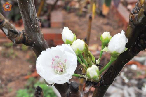 李增汪/圖文 梨樹開花,春意到。 光禿禿的樹幹枝椏間,冒出的梨花苞和盛開的梨花,為開春捎來花的喜訊。