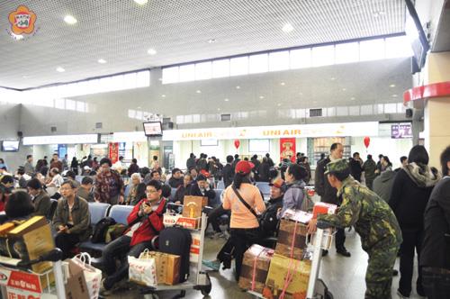 尚義機場昨日中午受到雨霧影響,能見度不佳,從中午11時58分起暫停航機起降,整個下午機場動彈不得,候機的旅客只能望天興嘆,金門和廈門海上航道也是霧茫茫,能見度差,小三通全天停航,盼望今(廿一)日天氣能轉晴,順利成行。 金門民航站表示,尚義機場於上午正常開場,台金各航線班機偶而在空中盤旋折繞,但都幸運的起降,只金門和廈門小三通航線東渡、五通碼頭與泉州石井港昨日續封港一天,因而尚義機場搭機人潮並不熱絡。午間,由於籠罩著小雨和大霧,中午11時58分的能見度未達航機安全進場最低安全標準的900公尺,被迫暫停航機起降作業。持續到下午,尚義機場能見度更低到300公尺,仍陷入關場狀態,立榮、復興以及華信三家航空公司各航線的下午班機都被迫取消,急壞數百名候機的旅客。 受到機場關場影響,航空公司估計有超過500名旅客被迫滯留,大多數為台灣觀光團及探親度假的鄉親。 金門航空站表示,台金各航線昨日排定往返共74班次,受天氣影響,三家航空公司計有22班次抵達,中午過後有52班被迫取消。航空站並強調,金門已進入霧季,天候不穩,旅客搭機前最好先向航空公司查詢,以免徒勞往返。