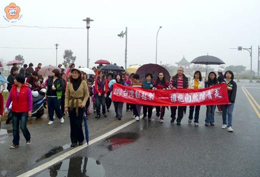 金城鎮東門社區舉辦「一百年部落及社區健康營造」活動,期使居民「吃得健康、活得健康」,尤以鼓勵社區的銀髮長者走出戶外投入休閒運動。昨天星期假日配合「一百台灣動起來」活動,廣邀居民攜家帶眷、親子同樂闔家一起出外踏青「趣」,在欣賞美景和共渡美好的春光中,也達到舒暢身心及健康。 目前,東門社區除每週定期在代天府前廣場辦理土風舞、元極舞免費教學活動外,在春暖花開的季節裡,東門社區貼心的規畫走出戶外的休閒活動,首先登場的是昨天配合「一百台灣動起來」舉辦的「健康久久~擁抱自然踏青走」健走活動,路程約有六公里左右,目的就是要讓老、中、青三代都能順利走完全程,報名參與人數破百,讓工作人員驚喜。 「健康久久~擁抱自然踏青走」健走從東門社區出發,每個人都拿著雨傘,也讓整個隊伍增了不少情趣,沿途經過浯江溪出海口、石雕公園、延平郡王祠、莒光樓、莒光湖公園。而,大家在一片薄霧中健走,就像蒙著薄紗及有點矇矓美,讓人另有一番飄逸的滋味,理事長許永順說,社區居民是攜家帶眷、扶老牽幼熱情的參與,活動辦得相當的受歡迎和圓滿。許永順表示,以往走過耳熟能詳的景觀點,沒有慢慢的去細細品味,都是驚鴻一瞥路過而已;透過健走以悠閒的心,仔細端詳紅樹林的美,棲息在林中的魚與鳥,還有石雕公園的各座雕像的力與美,以及延平郡王祠遠眺……,不僅是一次健康的活動,同時也是一次知性之旅。