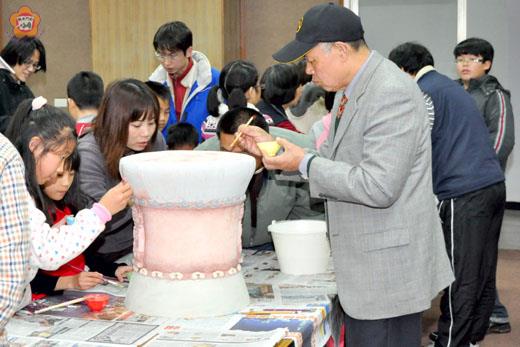 金門縣文化局昨天舉辦「繡墩、老街、話金門」彩繪活動,吸引不少民眾和學生到場參加,在黃耿茂老師所率領的工作團隊指導下,大家發揮創意,以釉彩彩繪於陶瓷素胚,將於窯燒加工後陳設於金門城的明遺老街中,增添公共藝術的特色與內涵。 這項建立城市色彩系統及示範操作-金門縣明遺老街公共藝術「繡墩、老街、話金門」民眾彩繪活動,昨日下午一時三十分起在文化局三樓會議室舉辦,吸引了三十多位喜歡藝術創作和對彩繪繡墩有興趣的民眾與學生到場參加,也有不少親子、師生結伴同行,共享一個洋溢藝文氣息的假日午後。 昨日承辦單位黃耿茂藝術創作工作室也特別由台運來六座預先燒過(增加硬度)的繡墩素胚,及各種顏色的釉料,供參與的學員彩繪,在黃耿茂藝術創作工作室黃耿茂老師與工作伙伴楊鎮魁、余立舜、邱研婷、王彥臻、曾學仁等人的說明與指導下,大家掌握陶瓷釉料彩繪要領,像是釉料大都不混色、釉料可以疊色、厚薄度要拿捏得宜,仔細繪畫後再加上輪廓線等等,將生活所見的生態、古典文化、閩南式建築等等風情美感收入彩繪題材中,盡情在素胚上,展現彩繪創意,呈現多元風貌的「繡墩」特色。 黃耿茂指出,學員彩繪後的作品將運送回台灣工作室燒窯加工後,再將成品運來金門,擺放在明遺老街聚落適當的地點,增加老街公共藝術不同面貌的作品。 文化局指出,繡墩又稱坐墩、涼墩,為一種古代坐具(座椅),多置於庭前院落,既實用又美觀。陶瓷繡墩宋、元時期亦有製作,但風行於明、清兩代,明代墩面普遍隆起,而清代均係平面。主要有青花、五彩、粉彩、琺花、三彩等製品。本次彩繪是以明代特色進行延伸,以豐富明遺老街的特色與內涵。 擁有藝術碩士學位的黃耿茂老師,也在母校國立台北教育大學藝術與造形設計學系兼教,他成立的「藝型創作工作室」有自己的燒窯設備,為了順利讓工作室能夠持續營運下去,黃耿茂結合了幾位志同道合的夥伴,開始承接各單位的公共藝術案件,陸續完成了新北市萬里國小請就讀學童共同參與創作的讀書牆作品;基隆市中山高中校內廣場一角的公共藝術作品〈迎曦啟航、中山鷹揚〉;基隆特殊學校利用舊建築語彙將之賦予重新創發的新釉色之入口意象〈季風的禮物、雨的祝福〉等等,成果相當不錯,近期內正為本縣製作的明遺老街公共藝術品繡墩等。