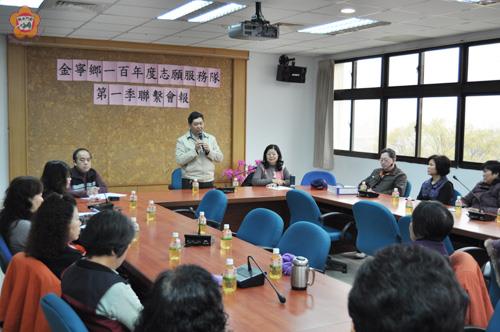金寧鄉公所綜合志工服務隊昨日召開一百年度第一季聯繫會報,五十多位志工夥伴齊聚一堂討論各項活動事項,鄉長陳成勇對志工無私付出的精神表示敬意與謝意,期盼更多人投入志願服務行列,一起來協助、照顧各項服務工作。 為協調各志願服務隊年度工作,並促進各團隊在推動志願服務業務之相互了解,金寧鄉公所昨日上午十時在鄉公所三樓會議室舉行,由鄉長陳成勇主持,鄉公所社會課長蔡世舜、隊長莊素娥與轄區志願服務隊志工五十多人熱烈參與討論,隊員也提出建議與檢討。陳成勇致詞時感謝志工夥伴們協助鄉公所照顧獨居老人、關懷中低收入戶,以及參與環境整理和各項鄉公所活動,是鄉公所的「好幫手」。對於志工服務隊成軍以來,不斷的成長,每一位隊員忙於家庭工作,也犧牲很多時間來投入社會服務的工作,更難得是團隊的和諧,有如家人般的情感,他深深感受到志工伙伴們的熱情,和濃濃的友情。 這項聯繫會報鄉長陳成勇列席致詞後,由金寧鄉綜合福利服務隊長莊素娥主持,透過會議討論提案有翁明相、周麗紅志工保險事宜。討論石蚵文化節活動舉辦志工編組分配工作事項及年度志工赴台參訪觀摩期程。隊員除熱烈參與討論,並將志工參與訪視心得提出報告經驗分享。