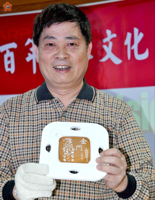 張建騰/圖文 煎餅客製化,糖印風獅爺! 「小林煎餅」的二代傳人林文華昨天在金門縣政府舉辦的小麥文化季幹部研習營中,示範以糖霜及PC板透印出客製化的煎餅。林文華與金門算是有淵源的,他的外公是金門人。 「小林煎餅」的材料是小麥做的麵粉,因此也是大雅小麥社造的一部分。「小林煎餅」的版圖已擴及大陸;在大雅參與社造,是基於一種回饋心理,但自從參與社造,「小林煎餅」在大雅的單日銷量也破了紀錄,成了文化與產業互蒙其利的例證。 由於注入了文化藝術因素,因此林文華開始在煎餅上透印各種應景的圖案,大受歡迎,還有排不完的演講。 他說,他曾在友人結婚時送給友人九十九個印有囍字的煎餅,讓新娘在宴客結束時當做贈禮,結果卻被友人埋怨了一頓:囍字煎餅太受歡迎,大家搶著要,差點連新娘都被捧走!