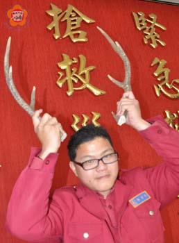 日前逐鹿太湖,得而復失;昨日捉鹿榕園,失而復得!金湖消防分隊昨天獲報榕園有鹿隻出沒,立即前往圍捕,結果捉到的正是日前曾經捕獲又掙脫的梅花鹿。 在空曠地方能抓到膽小又腿快的鹿,金門動植物防疫所所長莊謙恭認為這些消防人員很高竿! 三月十四日晚上九時五十二分左右,太湖畔有鹿隻出沒,黑夜中,人被鹿嚇,鹿被人驚。經人報案後,金湖消防分隊的洪國慶、吳丞恩、邱智群立即出隊逐鹿。當時洪國慶學牛仔拋出繩圈,套到鹿角,然後三人一起壓制梅花鹿;不過,可能因為繩索縛得不夠牢,梅花鹿踢人掙脫,迅速躍入太湖。 消防人員怕梅花鹿淹死湖中,又調派許至強、王聖文出動橡皮艇搜求,但波平無聲,失去蹤跡。他們不知道鹿會不會游泳,心裡感到歉然。 昨天上午,金湖消防分隊獲報榕園又有鹿隻蹤影,又派陳平、王贊善、邱智群前往逐鹿。由於梅花鹿鹿角上的牛仔圈勾到鐵網,因此消防人員這次終於把牠捉回,送交金門防疫所。為了怕鹿角傷人,防疫所把鹿角鋸下,並通知飼主認領。 防疫所所長莊謙恭表示,這隻梅花鹿是前埔鹿農所養;他所養的一群鹿逃跑已有一段時間。 莊謙恭表示,鹿很膽小,見人就跑,不會主動傷人,但要抓回牠也很不容易。金門野狗很多,逃跑的梅花鹿要生活也不容易,因此這隻鹿看起來已吃了不少苦頭;可能是因為榕園有牠愛吃的榕樹葉,因此牠才會跑去覓食。