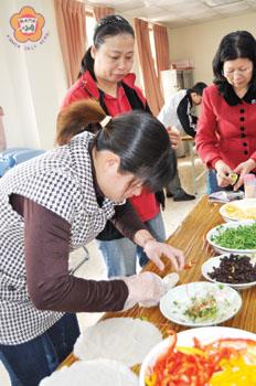 金寧鄉社區健康營造中心依據100年度部落及社區健康營造中心計畫,昨日舉辦一場健康飲食促進衛教宣導活動,邀請衛生局藥物食品衛生課課長吳俊輝教導DIY自製低熱量的健康飲食,獲得社區新移民婦女熱烈迴響,並提醒新移民注意自己的健康從日常生活做起,讓自己及家人吃的營養又有益身體健康的食物。 為鼓勵新住民踴躍參與社區活動,衛生局、金寧鄉衛生所結合金寧鄉社區健康營造中心舉辦的衛教活動,於昨日上午十時在金寧鄉衛生所二樓展開,並邀請衛生局藥物食品衛生課課長吳俊輝營養師教導新移民如何自製低熱量的健康飲食「蔬果手捲」,吸引各村新移民呼朋引伴的參與,大家興致盎然的聽課,充實自己的健康飲食概念。 吳俊輝營養師指出,健康飲食除在熱量上有所區別,在食物類別上也有規範,以適當的肉類、多一些蔬菜,足夠的米飯,減少高油脂的烹飪次數,提供多樣化菜色,較符合現代人需求的飲食組合,改變以往大魚大肉就是好的觀念,才是正確健康飲食。由於飲食不均衡,缺乏攝取足夠量的蔬果、攝取過多的脂肪及熱量,以致慢性疾病、癌症,及肥胖等疾病罹患率增高,因此推動符合健康原則的飲食,藉此減少飲食不當引起的疾病。因而吃對的食物,就能讓基因好好做工,維持身體健康,如果是不對的食物,基因不但無法工作,甚至迅速老化或導致疾病。 活動中吳俊輝教導新移民如何自製低熱量的健康飲食「健康蔬果手捲」製作,他說,首先薄餅的部份是以高纖維、維生素豐富的全麥為主,內餡再搭配天然食材:有苜蓿芽、豌豆苗、蘋果條、甜椒切條、葡萄乾等材料,吳俊輝也現場作示範,大夥專注的學習、體會自製手捲的樂趣,尤其很多婦女都是第一次製作,透過營養師現場示範簡單易懂的飲食教育及宣導,教導民眾如何吃出健康,增進民眾對醫療保健的知識。全體參與活動民眾也齊聚一堂品嚐色香味俱全的健康蔬果手捲健康美食,讓民眾有更深一層的認知,進而促進個人的健康,減少疾病的發生,期望能有助於日常生活保健。