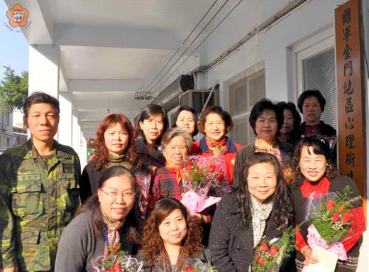 在金門當兵,新兵們因為有黃媽媽、陳媽媽、屈媽媽……可以代行母親角色,傾聽或開導,較容易打開心結,適應環境;甚至還可教他們做菜。這些金防部的志工媽媽聲名遠播,讓其他部隊也想要仿效。 金防部政戰主任李智雄、副主任吳福國選在昨天-三月八日婦女節,於「國軍金門地區心衛中心」與防區的志工媽媽們座談,並獻花感謝她們為國軍弟兄們所做的付出。 金防部的志工媽媽包括黃秀珍、陳招治、屈翠賢、林梨娟、蔡碧蓮、莊雪碧、李麗輝、陳蓮治、黃幼治、楊麗萍、鄭瑞芳、張秀華、盧波、許冰娜、陳錦梨、陳換治、李美麗、董玉芬等。其中,董玉芬是金湖鎮長蔡西湖的妻子,她看到其他志工媽媽們的表現,覺得很受感動,因此也自願加入。 黃秀珍表示,金防部的志工媽媽是以心輔為重;不過,她發現,對於出門在外的阿兵哥們,只要能做到傾聽,問題就解決了一大半。 許多次,志工媽媽耐心聽對方傾訴,心理盤算著如何解決對方的困擾,沒想到對方講完之後,卻說:我沒事了!可見,年輕人自己有能力解決問題,不過他們需要有人傾聽他們的心聲。 當新兵不樂意被派到金門時,黃秀珍會告訴他們,金門曾經是鄭成功帶領部將取臺的跳板;如果他們不是臺灣原住民,也許他們來到金門,就是在探尋祖先所走過的路線。別人來金門觀光三天兩夜要花很多錢,他們來當兵不但不花錢,還不只住三天兩夜……。 對於志工媽媽們的努力,李智雄表達了肯定與感謝;他表示,金防部志工媽媽們的付出,已經起了擴張作用,別的部隊也想學習;不僅如此,她們的善念義行,也必會對自己的兒女有正向的影響。 李智雄發給每位志工媽媽一張「安心名片」,上面有心輔官的電話、申訴專線的電話、政戰主任及副主任的電話。這張名片上寫著「相逢即是有緣,困擾請來電。傾聽您心聲,回應您訴求」。這張名片,每個新兵都會有一張。 名片上還有九個「一」;包括:熱情多一點、微笑露一點、心胸開一點、做事勤一點、紀律守一點、安全固一點、身體壯一點、責任重一點、榮譽強一點」。 藉由這張強化「安心感」的名片,李智雄希望服役青年遇到問題,可以向心輔官求助或層層上達;他希望志工媽媽也可以用她們自己的方式詮釋,讓弟兄們做到這九個一。 李智雄還引述了「一心三樂」的說法與志工媽媽們共勉,他表示,二十一世紀的一個核心(中心)是身體健康,以此為中心所要追求的就是「助人為樂」、「知足常樂」、「自得其樂」等(三樂或稱「三大作用」)!