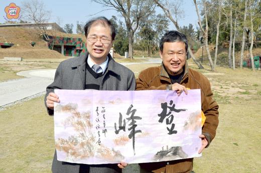 李金鎗/圖文 縣長李沃士昨天邀請台灣和平畫家李沃源大師到林厝和平紀念園區會勘,就興建和平牆建立共識。會勘完成後李沃源大師贈送一幅「登峰」山水畫予李縣長珍藏。見他的畫可以感受到中國景物的氣勢磅礡,震撼人心,尤其畫中顯見的透露出一股『天地之氣』,大師胸懷萬里,包容廣闊,山山水水盡蘊藏於他心中流露如畫面。 李沃源出生在金門古寧頭。他擅長山水畫心中常有水墨,信手便是雲煙,李沃源的瓷板畫,不需刻意經營畫面自有筆意墨趣,在瀟灑揮落的背後,卻是紮實的力與倍於常人的付出,對一位專業畫而言,長期執著於瓷板畫創作品超過1000幅以上,是份傻勁,是份難得,也是一份美的執著。 生平經歷過烽火歲月,體驗到生死一線,李沃源對和平、對生命,有著比常人更熱烈的期許,期間李沃源往來兩岸,牽線搭橋,由他促成的兩岸藝術交流活動,不下百場,被喻為「台灣和平畫家」。