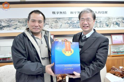 許加泰/圖文 新北市中和區公所區長邱垂益、烈嶼鄉長洪成發(圖右),兩人從基層民意代表、到地方行政首長,有著共同服務地方的經驗,兩人有頗多相似之處。邱垂益從擔任中和市民代表、北縣縣議員、中和市長、到台北縣於去年底升格為新北市,朱立倫市長繼續借重邱垂益來領導中和區公所。洪成發也從擔任村長、鄉民代表、縣議員、到烈嶼鄉長,他和邱垂益一樣,這二、三十年來,不遺餘力的關心地方事,為地方民眾服務。經過多年交流,兩人有了很好的感情,也有著彼此攜手合作的共識,希望中和、烈嶼愈來愈有發展。