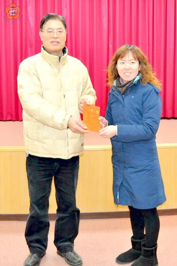 楊水詠/圖文 一年之計在於春!金城鎮公所員工董令譽,在觀光課服務多年,主要負責的是辦理觀光業務,表現優異。在建國一百年,他決定辭職、開創個人的事業;縣長李沃士(左二)昨天送紅包給董令譽(右二),感謝他對公所的貢獻,並與金城鎮長石兆瑉(左一)和鎮代會主席陳天成(右一)祝福他宏圖大展,事業有成!