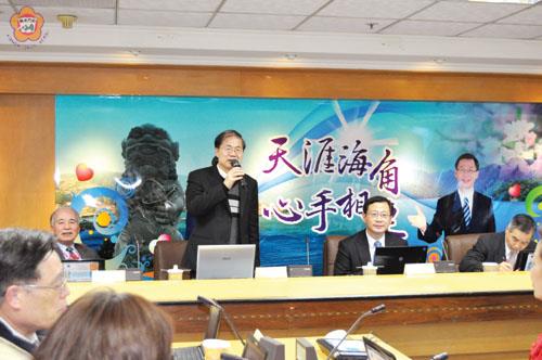兄弟再敘情誼!縣長李沃士、議長王再生昨日聯袂率領府會一級主管等近四十人前往大哥縣桃園縣拜訪,首日造訪桃園縣政府、縣議會,與桃園縣長吳志揚等人相見歡,並與桃園縣進行縣政與招商交流,李沃士在致詞時強調,希望往後兄弟兩縣市可以加強合作、交流,一起攜手邁向新紀元。 「金門縣政府赴桃園交流參訪團」一行三十九人於昨日搭乘上午八時三十分班機赴台,由於桃園縣政府昨召開有關直轄市升格的研商會議,縣長吳志揚特別囑託副縣長李朝枝率多位縣府主管前往松山機場接機,隨即驅車造訪桃園多功能藝文展演中心。 這座席次達1500人次的藝文展演中心,儼然成為桃園縣的新地標,展演中心地上7層、地下1層鋼骨建物,總樓板面積2萬2200平方米,拆掉座椅則可容納5000人,以玻璃、鋼架等構成圓形外觀,像一條向上盤旋的彩帶,相當具有現代感,且該處先前才曾舉行過第47屆金馬獎,讓李沃士與縣府各主管都印象深刻。 稍後,府會首長也聯袂參訪桃園縣議會,並在議長邱奕勝、副議長李曉鐘、秘書長李慶同、副秘書長楊明福與多位縣議員的親自引導下,逐一參觀該會的議事廳與會議廳,邱奕勝表示,歡迎金門的好朋友來訪,他介紹桃園有山、有海、工廠多,今年人口超過兩百萬更成為準直轄市,可望成為第六都,相信往後桃園會不斷的進步蛻變,希望金門的好朋友們可以多多來訪;他也建議金門縣政府可以成立台灣農產品推廣中心,協助各縣市的農產品在此銷售,讓這些農產品透過金門的平台,成功行銷大陸。 這項建議,也立即獲得金門府會首長的認同,王再生表示,府會回去會好好來評估,看如何成立較為適當,讓金門的這個農業平台,可以為全國各縣市來服務。 楊明福祖籍是福建南安市,且他與兒子都曾在金門當兵,由於有特殊的「留金歲月」,楊明福昨看到來自金門的好友來訪,相當熱情的為大家作嚮導,喜愛騎自行車的他,也跟大家相約,改日金門再聚! 桃園縣長吳志揚、副縣長黃宏斌、李朝枝與各局室主管於昨日下午三時二十分在桃園縣政府大門熱情的歡迎來訪的金門參訪團成員,稍後並假縣府的十二樓舉行交流聯誼活動。 吳志揚在致詞時表示,桃園與金門同為政府的國門,希望兩縣可以多交流、幫忙,他也打趣的說,明明兩縣都有機場,卻無法「直航」,還要轉道「松山機場」,下次他們造訪金門,也是只能走這個路線,實在很費疑猜。 吳志揚提到,該縣去年六月的人口已突破兩百萬,今年一月一日,成為準直轄市,也就是介於縣與直轄市,他希望往後桃園的各項建設,能突破縣的格局,包括機場捷運、城鄉風貌等,都是他們在持續努力的項目;此外,他也恭喜金門,四月起將成為首批開放陸客自由行的縣市,吳志揚強調,兩縣可以做很多的合作,包括酒、觀光等,他也期待近期有時間可以回訪金門,造訪以該縣為名的「桃園路」。 來桃園很多次,但卻是首次造訪桃園縣政府的李沃士,昨也特別感謝桃園縣府會對旅居桃園的金門鄉親平日的照顧,他也提到,當初在參選縣長時,雖然吳志揚也剛好適逢縣長競逐的重要時刻,但國民黨榮譽主席吳伯雄(伯公)還是兒子放一旁,特別跨海來幫他加持,讓他很感念,此外,伯公也幫忙大力行銷金酒,讓金酒成為餽贈重要外賓的用酒,這些點點滴滴,都讓他感恩在心。 李沃士也感謝先前的劉邦友、陳水在兩位縣長促成,讓兩縣可以成為姊妹縣,他說,可以跟桃園結親,覺得很榮幸,因為畢竟兩縣的差距大,金門的人口現今還沒突破十萬,而桃園縣則是突破兩百萬,承蒙桃園縣不嫌棄。 李沃士提及,這段結親情緣雖然已經超過十多年(民國八十五年締盟),但很可惜的是當中有數年的互動少,但金門還是將此情義留在心中,他也稱讚,桃園縣所贊助的桃園路,設計高瞻遠矚,全線四線道,讓人見識到前劉縣長是很有遠見,他也很珍惜此機緣,希望將桃園路建設成為全金門最漂亮的一條道路。 最後,李沃士也歡迎桃園大哥縣的好朋友有空再去金門走動、看看,讓兩縣的因緣可以持續擴大,他說,桃園的工商發展、兩岸交流,在國內都佔舉足輕重的角色,桃園是國門,金門也是小國門,金門機場的運量在台灣比桃園少一些,但卻凌駕其他各縣市,希望能跟桃園縣來多做學習。 紅白結盟!李沃士說,金門有白酒│高粱酒、桃園也有紅麴葡萄酒,或許兩種酒可以相結合,一定更好喝。李沃士也力邀吳縣長於八二三率領桃園縣府團隊造訪金門,一同見證八二三和平紀念日。 王再生也致詞指出,期許兩地在旅遊、交通可以多合作,兩縣共同昂首闊步邁向世界,一起繁榮。 「金門縣政府赴桃園交流參訪團」今日將參訪大潭工業區、青埔國際棒球場與銘傳大學桃園校區等地。