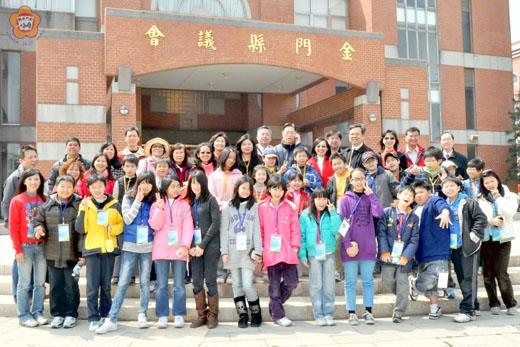 台北市萬芳國小師生與家長一行由校長戴秀華率隊昨日抵金與金沙國小進行連續第十一年的城鄉交流,昨日上午並由金沙國小校長王添泉等人陪同前往金門縣議會參訪,受到議會秘書長許丕贊及組室主管的熱誠接待歡迎,在參觀議事廳瞭解金門議政發展後,師生也對於金門最高的民主殿堂留下深刻印象,認為是難得的體驗,也豐富了城鄉交流內涵及校外教學的領域。 台北市萬芳國小城鄉交流團由校長戴秀華及前任校長吳國基領軍,成員包括該校教務主任吳俊傑、訓導主任鄭惠真、總務主任洪碧梅、家長會副會長徐鳳玉等及師生一行近三十九人昨日抵金與金沙國小展開三天二夜的城鄉交流活動,受到金沙國小校長王添泉及師生的熱情歡迎。 昨日上午十一時三十分許萬芳國小城鄉交流團在王添泉校長等人的陪同下前抵金門縣議會參訪,秘書長許丕贊率同各組室主管、秘書熱誠接待,並引領參觀議事廳。 許丕贊秘書長指出,金門縣議會是地方最高的民意殿堂,議事廳是議員開會問政的地方,議員為民喉舌,為縣府施政把脈,能夠進入議事廳參觀感受議員開會的情形也不容易,希望大家在參訪後,能在此次來金的交流行程中,留下珍貴的回憶。 王添泉校長也感謝議會長官的安排,讓來金交流的師生走進議事廳,感受當議員的滋味,有一個難得的體驗。 戴秀華校長也非常高興有機會帶著師生親臨金門縣議會的議事殿堂,充實學生的校外教學領域,豐富交流內涵。 總務主任甯國平也向當訪的萬芳國小師生家長介紹金門的人口數成長速度及議員席次、議會開議情形、議員的職責、縣議會的發展過程與現況等等,讓他們對於金門縣議會的組織與沿革等有進一步的認知。 萬芳國小團員中有二十七位三到六年級的學生,他們昨日在議事廳中,最喜歡坐上議長、副議長的席位上,而縣長及縣府官員座位也是大家喜歡的位置,至於議員席位比較少人坐。 在完成議會參訪活動後,萬芳國小城鄉交流團師生等也與議會主管人員在議政大樓前合照留念,而中午議會也設宴款待這批遠道來訪的師生們,賓主盡歡顏。