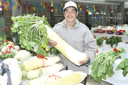 縣農會昨辦理金門地區慶祝一百年農民節表彰大會,於社會福利館地下室廣場辦理「農民節農業成果展示」,展現蔬菜、雜糧、畜產、農產加工產品,時間為期至三月六日下午五時,金門縣農會邀請民眾到場賞花海,見證金門農業發展成果。 「農民節農業成果展示」社會福利館地下室展出,內容有蔬菜、雜糧、特用作物、畜產、蔬菜農產加工,績優安全農業示範農戶農產,縣農會輔導研發加工產品。 農友鄭朝來(如上圖)展示現場最大的蘿蔔,重達十四公斤,去年中秋節種植,近期收成,展覽結束後將用來製作菜脯。