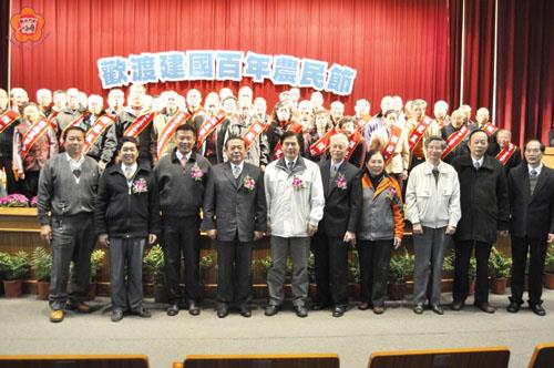 金門地區慶祝一百年農民節大會昨日舉行,現場表揚四十九位優秀農民。其中,績優安全農業示範農戶由金沙鎮黃順達獲第一名,贏得三萬元獎金。農會家政班班員手舞足蹈炒熱氣氛,與會貴賓紛紛向勞苦功高的農民致敬,讚揚農業為金門發展的根本,要持續發揚讓農業永續,更要為農民喝采,讓大家收入、健康「一百」。 推動新農業運動、金門農業亮起來,是建國百年金門地區農民節慶祝活動的主題,金門縣農會昨日上午十時起假社會福利館辦理慶祝大會,由縣農會理事長陳國強主持,縣府主任秘書盧志輝、福建省政府秘書長曾華德、縣議員蔡水游、陳滄江、烈嶼鄉公所秘書呂合成、金湖鎮鎮長蔡西湖、金寧鄉鄉長陳成勇、金沙鎮鎮長陳昆第、金門農工校長陳水芳、立法委員陳福海辦公室主任黃秀珍,地區機關首長,績優農民以及農會家政班班員等觀禮。 金門地區慶祝一百年農民節表揚大會昨登場,現場公開表揚模範農事小組長、模範農民、績優安全農業示範農戶等優秀幹部暨表現優異的農民。理事長陳國強表示,縣府正致力於安全農業推廣,讓鄉親吃得更健康,環境更永續。值得一提的是去年地區農產收穫豐富,值得為農民喝采,盼接續配合政府政策,延續農業發展。 縣府主任秘書盧志輝表示,中國以農立國,農業是金門發展的根本,縣府致力於推動安全農業,除了讓民眾飲食更健康,更重要的是減輕土地負擔、保育水資源,讓環境永續;未來安全農業市場應不只在金門,而是放眼兩岸,打造金門農業經營的新面貌。 立委陳福海辦公室主任黃秀珍表示,金門成果豐碩,打造許多知名的農產,建國一百年,祝福農民收入一百、健康一百。蔡西湖也表示,在金門有農民真好。陳成勇說,農民靠天吃飯,沒有農民就沒有今日的富裕生活。 在昨日活動現場除了表揚績優人員外,與會各界貴賓也在社會福利館地下室歡宴模範農民,透過幸運摸彩慶祝一年一度農民節。金門地區慶祝一百年農民節表彰大會獲獎名單如后:九十九年度績優安全農業示範農戶十名:第一名金沙鎮黃順達,獲獎金三萬元。第二名金湖鎮呂金獅,獲獎金兩萬元。第三名烈嶼鄉洪天梯,獲將金一萬元。第四名金寧鄉蔡容英。第五名金城鎮盧志欽。第六名金寧鄉許美汝。第七名烈嶼鄉洪瑞隆。第八名烈嶼鄉洪文尊。第九名烈嶼鄉洪瑞興。第十名烈嶼鄉林長用。 模範農事小組長五名:金城鎮許心富、金寧鄉楊金彪、金湖鎮翁玉敏、金沙鎮王勇培、烈嶼鄉洪海瑚。 模範農民三十四名:金城鎮:莊玉盆、蔡水泮、楊秀靜、傅國民、李坤成、董加平、張招治、董明梨。金鄉寧:余國興、李文佑、蔡國川、莊永福、李錫化、楊文西。金湖鎮:周清源、陳火撰、陳依還、陳明範、楊朝顧、吳添平、蔡添支。金沙鎮:莊翠鳳、何永候、黃祖楷、黃維岩、黃楊溫來、陳金象、黃尚白、吳有完。烈嶼鄉:林長殊、方容樹、蔡天勇、洪清福、陳延賓。