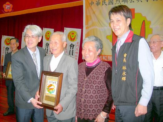 旅台的烈嶼公共事務協會昨日舉行第十屆會員大會,選出第十屆新會長孫國欽。而到場列席的福建省主席薛承泰並即席以孫國欽、林永輝兩人名字賦聯一首「國恩家慶、永澤金門;欽賜榮耀、輝映烈嶼」,祝賀孫國欽,及表彰卸任會長林永輝對該協會的貢獻。 以烈嶼鄉親為主所組成的「中華民國金門烈嶼公共事務協會」,昨天下午四時起,在新北市中和區枋寮活動中心舉行第十屆會員大會,改選會長與理監事。 昨天烈嶼協會會員大會,兼任福建省主席的行政院政務委員薛承泰、金門籍立委張慶忠、新北市議員林國春,立法院總務處處長黃炳中、金門縣政府地政局長林德恭與縣府台北服務處主任陳永富等人應邀列席。 林德恭局長代表李沃士縣長表達對旅台烈嶼鄉親的關懷與祝福。他除報告李縣長就任一年多來,推動的金門大橋建設、金門大學升格並招收陸生、金門綜合醫療大樓也已動工,造福金門的政績逐一推展外,也特別就金門複雜的土地登記、地籍清理提出說明。 林德恭說,地籍清理條例公告以來,金門民眾登記戰地政務終止前遭占用或徵用的土地已有二十萬多筆,但經地政局清理,其中有二萬五千多筆無法確認所有權或地主身分,事關縣民權益,縣長要他特別向鄉親說明,請大家設法找出地籍證明文件,或聯繫旅居南洋的親友返回金門登記認領土地。 陳永富主任也代表李沃士縣長向大家拜晚年,祝大家身體健康、萬事如意、兔年行大運。他並報告李縣長就任後特別在台北榮總所設「金門鄉親服務台」執行現況、以及縣府與旅台各同鄉會理事長積極向中央陳情,要求降低台金航線機票費,目前已有華信、復興航空網路提前訂位打七折,但他認為終極目標應該還是全面降價,除造福金門鄉親,亦有利於帶來觀光客。 孫國欽四年前接下秘書長重任,昨晚更上一層樓當選會長。他感謝大家的支持,表示未來兩年,一定會竭盡心力,為烈嶼鄉親服務。 烈嶼協會卸任會長林永輝,在兩任四年的會長任期中,將該會經營得有聲有色。在任期最後,更積極推動在廈門舉辦成立該協會服務分處。本月十九日,位於廈門市文灶區的烈嶼協會廈門服務分處順利舉行成立茶會,成為兩岸同鄉會社創舉,為林永輝的任期劃下圓滿結果。 林永輝表示,卸下會長職務之後,將以新北市新店區吉祥里里長的身分,繼續關心家鄉,推展公益,永遠與鄉親的心連在一起,未來他的里辦公處將與烈嶼會館緊密的結合在一起,獲得與會鄉親熱烈掌聲。 改選協會理監事後,烈嶼協會舉行聯誼餐會,頒發獎助學金:博士組臺北市立教育大學莊友貴;碩士組東南科技大學吳奎建、政治大學吳佳蓁;大學組臺灣大學顏齊賢、中華科技大學孫詩雯、臺灣師範大學吳曉雯、清雲科技大學林詩盈;高中組清傳商職陳韻如等八人。國中組:洪舒維、洪宜宇、廖昱瑋、張玉潔、楊婷安、洪宜寧、吳嫣然、謝辛亞、呂翌瑄、莊媛雅等十人;國小組:蔡竣亦、吳宜庭、洪 琦、洪十允、洪偉蘋、邱柏維、林奕妤、洪立薪、陳佳君、洪襄樺、洪緯縢、楊宗翰、陳冠穎、許哲瑋、楊宜倫、洪正曄、林芷如、李芷楹、林旭盈等十九人,各獲頒發新臺幣五百至四千元不等獎助學金。 為慶祝建國一百年幸福百百,該協會也舉辦五十年金婚、六十年鑽石婚誌慶表揚活動。金婚:孫亞山、孫蔡金木伉儷及陳金鍊、陳林翠環伉儷。鑽石婚:孫水泉、孫呂搻伉儷及洪源財、洪孫撾伉儷等四對佳偶。卸任會長林永輝致贈每對佳偶獎牌乙面。 昨日活動隨後也舉辦聯誼晚會摸彩,現場氣氛相當熱絡,與會會員人人盡興而歸。