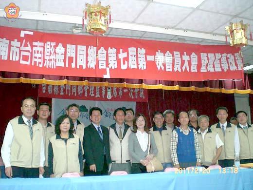 台南縣金門同鄉會20日上午九時假台南縣永康區正義街17號的正強里活動中心召開第七屆第一次會員大會,改選理監事,由縣府駐台灣南區服務處主任蔡忠盼,以超人氣魅力獲得支持,當選理事長。會中,鄉親會員報到踴躍,人氣鼎沸,席開40桌,有近450名鄉親熱情參與,展現了台南縣金門鄉親高度的凝聚力。 「美不美、故鄉水」;「親不親、故鄉人」。旅居台灣各地的金門鄉親期待每一刻鄉親相聚的時刻,特珍惜相聚的歡樂時光,不管離聚會地點有多遠,也不計較自己事業有多忙,更不會在意原本是否認識,只要同桌一坐,金門高粱酒一喝,話匣子一開,一聊起家鄉的點點滴滴,那真是沒完沒了,這種「人不親、土親」、「血濃於水」的鄉親情懷讓人特感溫馨且窩心。 台南縣金門同鄉會成立於民國80年,今年正逢20週年。福建省薛承泰主席特在其特刊題字:「仙洲跨海到台灣,成功永立在雲端,南台奠基聚鄉彥,浯水不斷藏心田」,謹以祝賀。而縣長李沃士更在其特刊序文中,撰文誇台南縣面積廣闊,人口眾多,文風鼎盛,農經發展優加上轄內又有科學園區,台南縣以「文化」為基底,以「科技新城」為願景全方位發展;在此一優厚根基下,歷經歷任理事長與理監事戮力耕耘,會務順暢,鄉親服務圓滿,特囑文題詞,爰綴數語,用表申賀。另外台北市、高雄縣、市、台中市、屏東縣、市各同鄉會的理事長、總幹事、理監事、以及陳福海立委團隊,台南市議員、屏東榮民服務處、台南警察局也都參與盛會,整個會場人頭竄動,熱鬧非常。 會中順利選出15名理事及5名監事,當選名單如下: 常務理事:蔡忠盼、許建國、翁明恍、陳佳揚、蔡明桀;理事:周錫平、洪勝開、許志仁、黃婉婷、王允和、呂謀遠、莊學鵬、董報國、呂世清、張月英;常務監事:梁榮塔;監事:張長江、莊旭輝、吳建鴻、陳玉羨。 其中,金門縣政府駐台灣南區服務處主任蔡忠盼以其超人氣的魅力印象,眾望所歸,被所有理事推舉為理事長。足見蔡忠盼那份融通爽豁的親和力,與平日負責誠信的態度,以及熱心服務鄉親的用心再一次被台南縣鄉親所肯定。而陳文泉也被理事長委以總幹事的重任。相信台南縣同鄉會今後在蔡忠盼理事長與陳文泉總幹事的領導籌劃下以及全體理監事們的精誠團結、同心同力的合作下,台南縣同鄉會的會務必將績效卓著,鄉親服務工作必定圓滿順利。