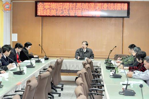 金門縣政府昨日邀集相關單位,就金寧鄉后湖村「長城堡」週邊後續植栽綠美化及管理,進行協調。經討論後,縣長李沃士作成結論,第一階段將優先以長城堡週邊做綠美化,後續再擴充,未來再考慮做整體性觀光考量。 金寧鄉后湖村「長城堡」週邊後續植栽綠美化及管理協調會議,昨日上午八時二十分起,在縣政府第二會議室舉行,由縣長李沃士主持,建設局長葉媚媚、課長李廣榮、林務所所長楊慧明、金寧鄉長陳成勇、榜林村長許維琛、金門民航站主任洪念慈、金防部砲兵群指揮官鄭有為、國有財產局臺灣北區辦事處金馬分處主任黃國卿等出席參加。 縣長李沃士指出,為使民航站處理飛機起降能見度作改善,長城堡週邊經進行樹木截幹後,感覺有一些荒涼,因此,進行整體綠美化,以讓它變成一個美麗公園,對后湖村居民來說是一件好事。 金防部砲兵群指揮官鄭有為則指出,因降低起降標準所做長城堡週邊樹木截幹,造成軍事設施上隱蔽、偽裝效果喪失,後續能做植被、綠美化,把金門對外交通重要門戶做好,是建議縣府在長城堡週邊種一些小樹木及草皮,部隊將全力配合植栽綠美化作業,並請民航站在樹木截幹做好收尾工作。 建設局長葉媚媚則表示,在后湖會元館部分,將找廠商就現地規劃做田園造景,希望能符合后湖鄉親需求。另外,長城堡區塊綠美化,後段管理也將請民航站及部隊做分工管理配合。 金馬分處主任黃國卿則對於長城堡週邊為航空用地,要進行綠美化在金門民航站表示短期沒有使用規劃,只要縣府和金馬分處訂個綠美化作業合約即可。 金寧鄉長陳成勇則表達,未來只要長城堡週邊部隊撤走,鄉公所願意撥用長城堡做觀光開放,並建請林務所做區內步道規劃。 對於縣府及金寧鄉公所有意爭取對長城堡撥使用權,鄭有為表示,此堡仍是「平封戰啟」,回去後要向上級再請示,並認為比照溪邊營區模式,做適度開放,則軍民兩宜。 縣長李沃士也要求林務所做統一規劃,按步推動,第一階段以長城堡週邊優先做綠美化,後續再擴充,未來再考慮做整體性觀光考量。並強調在雨季來臨前,不要再拖,趕快做。