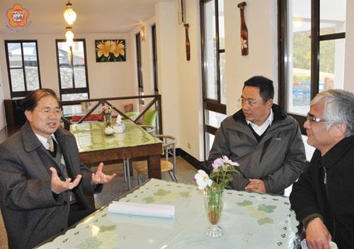 張建騰/圖文 花錢買時間! 金門縣長李沃士(左一)昨天到「文學茶坊」關心業者營運的情況,店長陳文龍表示目前生意「普普」(平常);等天氣熱一點時,會辦理促銷。 李沃士與交旅局局長楊鎮浯(右二)、財政局課長鄭自清(右一)等坐下捧場。李沃士認為金門的海邊值得發展渡假或遊憩活動,不過要等民間自然發展,可能時間會拉很長;他希望改用公辦民營的方式,由政府投資設施,由民間經營管理;花錢買時間,以加速發展。 為了鼓勵非透過旅行社的外來「背包客」,李沃士認為可以補助消費券,只要「背包客」到特定的景點蓋滿戳章,就可以領取消費券兌換特產。 另外李沃士還希望透過甄選活動,邀請「部落客」到金門免費旅遊,由他們來筆寫或圖說金門的點點滴滴。
