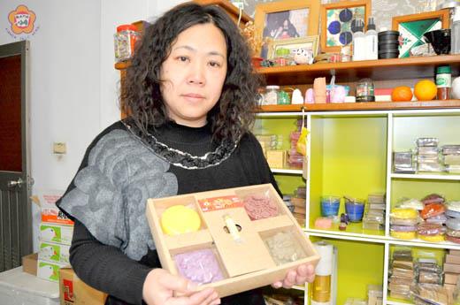 創「皂」幸福!盤山女兒翁秀娥憑藉著創新與熱忱,積極投入手工皂的製作,所研發的手工皂種類、造型各異,有高達三、四十種之多,還開發了討喜的禮盒組,獲得不少死忠網友的支持與討論,儼然成為地區的「手工皂達人」,翁秀娥說,她覺得可以作自己有興趣的事,是件很幸福的事,而她希望將這份幸福傳遞給更多人。 今年四十五歲的翁秀娥,提起最愛的製作手工皂,彷彿在談著她心愛的孩子一般,充滿著熱情,翁秀娥說,她早在民國九十一年,就在花蓮學做手工皂,當時曾師承「皂圈」著名的老師詹玲瑾與喬叔,雖然當時這項活動還算冷門,但卻讓她深深的著迷。 之後,她到桃園開設義大利餐廳,忙碌的生活,讓她不得不放棄喜愛的製作手工皂興趣,直到兩年前,她因為身體健康亮紅燈,在媽媽的親情勸說下,返回家鄉讓媽媽照顧。 翁秀娥說,回到金門後,雖然白天也在上班,但晚上的空閒時間變多了,她又可以重拾所愛│開始製作手工皂;翁秀娥表示,製作手工皂,剛開始還是以環保為出發點,希望回鍋油變成肥皂,不但解決家庭廢油何處去的問題,同時也為家庭省下購買肥皂的費用;此外,由於她與家人的皮膚與髮質比較敏感,考量家人的健康,她決心投入手工皂製作,並且精益求精,創造、變化各種材質、種類的手工皂。 翠綠的粽子、喜氣的桃子、甚至是包子、月餅、派大星、風獅爺圖騰等,翁秀娥的手工香皂,造型多變,而這些手工皂除了是她的構想創意外,也有不少是她跟孩子的心血結晶,雖然是單親媽媽,但她給孩子滿滿的愛,並將這份愛也傳達到作品中。 翁秀娥提到,製作手工皂的入門其實很簡單,家中的鍋碗瓢盆其實都可以是「傢私」,只要有興趣、願意去多方嘗試,就可以依據自己的喜愛與需求,做出獨一無二的手工皂。 手工皂有什麼優點?翁秀娥指出,一般的沐浴乳、洗髮精,一旦使用,在沖洗的過程中,都要沖洗非常多次,無形當中浪費很多水,但手工皂,只要一沖水,就清潔溜溜,為了環保與健康,在她的宣導下,現在許多親朋好友「從頭到腳」都使用手工皂。 「有人喜歡用,我就有成就感!」翁秀娥開心的說,對於手工皂的製作,她可是傾囊相授,其實紫草、薰衣草+艾草+芙蓉+尤加利精油、茶樹精油都可以做出漂亮的紫色皂:::.,翁秀娥不吝嗇公布複雜的「喇皂」配方,也希望更多人一起來嘗試。翁秀娥說,除了手工皂外,目前她的專長還有自製化妝水、乳液、護唇膏與防蚊液等。 翁秀娥表示,目前市面上的手工皂價格不一,從幾十元到數百元都有,其實跟所用的油與材料有很大的關係,便宜的手工皂很多都是以工廠大量製造,而她的手工皂都是靠自己一手「打」出來的,且保證都是純手工,且原料是植物與精油等純天然物質,希望讓家人、朋友用的安心。 『手工皂是這兩三年金門才開始流行!』翁秀娥提到,現在金門也有很多愛用者,她經常應邀到社區去擔任講師,所以她也樂於將這項手藝推廣,並希望有興趣的朋友可以跟她多交流、切磋,她的電話是:0934363031。 除了教學外,她也在網路上成立二皮手作坊的部落格,將自己最新的作品跟網友們來作分享,至於為何叫「二皮」,翁秀娥說這是姪子給她取得暱稱,她覺得很可愛,索性就拿來當招牌,她說,希望未來可以成立公司,來推廣手工皂,讓更多人可以一起來分享與使用。