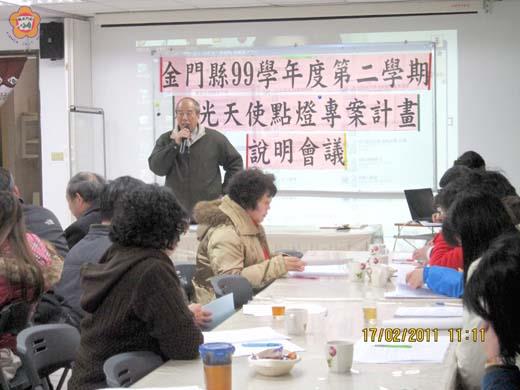 教育部核頒「九十九學年度第二學期夜光天使點燈專案計畫」期程為一百年三月十五日至六月三十日,合計一百五十個小時。金門縣政府教育局表示,有意申辦單位請速依規定召開學校專案會議,並備齊相關資料(完成用印),一式二份含光碟,於二月二十四日下班前逕送金門家庭教育中心李旼燕(電話:312843)彙整,俾統一函送教育部申請。 金門縣政府教育局也於日昨,在金門家庭教育中心召開金門縣九十九學年度第二學期夜光天使點燈專案實施計畫說明會,並由教育局長李再杭主持。 李再杭指出,教育部為強化弱勢家庭國小學童之教育扶助,而目前政府相關課後照顧服務時間都於晚上六點前即結束,為免家中乏人照顧之學童於課後照顧時間結束之後在外流連,造成身心發展與安全之隱憂。因此,教育部並再核頒「九十九學年度第二學期夜光天使點燈專案計畫」。 夜光天使點燈專案計畫,實施對象以國小階段學童經學校召開小組會議(由校長主持,得邀請輔導主任、專任輔導教師、導師、家長會長或家長會代表,如有社工人員亦得邀請其參與)認定並作成詳實會議紀錄,確屬低收入、單親、失親、隔代教養等之經濟弱勢家庭國小學童,且下課後確實無人予以照顧,以致有影響其身心健康與發展之虞者。 李再杭並表示,如社區未有學校承辦,方得由登記立案之民間社團、文教基金會、宗教團體等單位辦理。地方政府將依計畫經費概算表之標準,檢具各據點計畫及預算表報提出申請。相關訊息刊登於教育局及家庭教育中心網站。 至於辦理時間於學期期間每週至少擇三天、共計十小時,週一至週五課後時間辦理(每天起訖時間由辦理單位決定)。每天最遲至夜間二十一時止。招收人數:每班以十八、十五、十人為學生編列基準。辦理期間自三月十五日起至一百年六月三十日止。 李再杭也表示,夜光天使點燈專案計畫,主要係提供孩子在安全、愛與關懷的環境中,課程內容不以課業輔導為原則,以親職子職教育、代間教育、親子共讀、文化藝術教育、品格教育、生命教育、生活教育(如學習做家事)、生涯發展等為學習活動主軸,可採繪本欣賞、影片欣賞、說故事、口述歷史、美勞、運動、或伴讀(寫)作業等方式進行。 而為增進學生家長親職教育知能與教養責任,各辦理據點每期至少須規劃辦理二次相關家長參與之學習成長活動,並請家長於同意書內簽署同意配合每期至少參加一次親子互動成長課程。每期到校擔任志工至少一次。