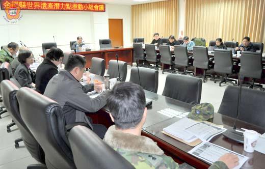 大金門與俗稱小金門的烈嶼戰地文化,被遴選為全國十二處世界遺產潛力點之一。縣政府成立「金門縣世界遺產潛力點推動委員會」,在昨天召開第一次委員會議,由縣長李沃士主持,並討論通過一百年度金門推動世界遺產登錄計畫工作項目等三案,俟報文建會核定後據以實施,期以在深耕世界遺產早日有所突破。 金門縣世界遺產潛力點推動委員會昨天上午十時,假縣府第一會議室召開第一次委員會議,聽取文化局所作推動登錄世遺相關計畫工作簡報;李沃士並和出席與會委員合影,包括縣府建設局長葉媚媚、教育局長李再杭、交旅局長楊鎮浯、主計室主任李秀荷,以及國防部、金防部和金管處等人員。 李沃士表示,金門難得留下一些可貴的世界遺產,諸如軍事及紅磚建築文化……,也受到中央的重視和認同;在全國推動申請世遺之中,金門應被列為最優先的對象。尤以申請世遺需要更專業和經費投入,他說,在一步一步的推動當中,有賴各位委員在專業給予大力支持及有所成。 在推動世遺的閩南文化部份,李沃士透露指出,在新一年度有透過一些管道與大陸方面溝通及協調,期望與(大陸)福建省城市合作,而且也已到大陸中央層級,希望與陸方合作閩南文化世遺方向持續來推動,在兩岸區域和兩岸城市模式,申請閩南文化世遺更順利和有正向的發展前景。 至於後冷戰時期兩岸的對抗,所遺留的軍事遺址和設施,李沃士表示也可與大陸廈門方面來接觸、談談看,從多面向的不妨合作,使申請世遺更有機會。 金防部副參謀長楊迺聲表示,金門在推動世界遺產潛力點工作,國防部和金防部是責無旁貸的,也會積極的參與。至於軍事設施撥贈和深具歷史檔案文化封存、軍事遺址釋出,他說,在金防部的立場是樂於來參與和檢討,國防部已核定十項六十八件軍事裝備,最快在今年三月份可辦理撥贈,充實軍事觀光資源。 與會金管處人員表示,申請世遺是一件很重要的工作,金管處會積極的參與推動;金門在推動世遺潛力點的過程中,金管處也願樂於配合,共襄盛舉。至於在傳統閩南建築補助修護標準,金管處也表示業已修定,並朝與縣府補助一致來努力,目前修正辦法報請內政部營建署核備之中。 縣府教育局長李再杭建議紅磚建築文化能納入金門宗祠,並配合補助石埕和巷道,更具有傳統建築特色。同時,他也建議軍事坑道和標語透過評鑑和獎勵方式,鼓勵民間保留下來;而且可以拍攝申請世遺宣導短片播放,讓民眾認識申請世遺的重要性,樂於支持和認同。 縣府交旅局長楊鎮浯表示,目前交旅局正在規劃幾處軍事景點,希望在推動世遺有更明確的方向及目標,使規劃中的軍事景點符合世遺推動需求,也能貼近市場和軍事觀光更相契合。同時,主計室主任李秀荷提出在推動世遺工作,中央也應負擔一部份經費,不光只靠地方的財源。 從台趕到會場的國防部官員表示,兩岸關係已經和緩,但還是有敵我雙方的風險在;雖然推動世遺是一件很重要的事,他認為在提供相關軍事資源時,應要考量到保留戰略戰術價值的地方,平時釋出而戰時可以收回使用。另在排雷方面,國防部官員建議保留一、兩處具有歷史價值的雷區,以做為軍事觀光和憑悼的景點。另外,與會委員黃振良表示,除了閩南、僑鄉文化外,軌條砦、坑道應有計畫的去保留,並在戰地文化朝著海島防禦體系來做世遺的保留。而且,在非物資文化資產方面,金門的宗族文化是獨步於全世界的,也值得去注意和保留的資產。 李沃士指出,推動世遺是長遠的目標,重要的是在推動的過程,在按部就班之中,得到與世遺一樣有價值的資產。縣政府致力於推動世界遺產深耕工作,並具有一些成果,李沃士認為應該拿出更完整成果資料,讓中央知道金門在推動世遺所付出的努力有多少,更支持金門在深耕世遺工作,而且未來會有更亮麗的成績。 金門縣世界遺產潛力點推動委員會也修正一百年度金門推動世界遺產計畫,內容有:持續檢討金門推動世界遺產申報作業之基準、檢討地方行政機制與資源整合課題、檢討總體策略評估與執行機制的擬定。同時,檢討相關法規並研提自治條例與法規草案、辦理民眾教育和國際交流等;並且成立聯合辦公室,運用團隊精神,以利執行繁雜的業務。