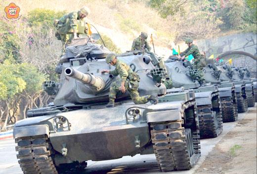 張建騰/圖文 毋恃敵之不來,恃吾有以待之! 金防部戰車營昨天在小徑營區進行戰車群的海岸反擊操演。戰車營營長蘇宏琪表示,相關的操演,平日都會按時進行。由於國軍守土有責,即使是春節,必會堅守崗位,在前線捍衛後方。昨天操演的重武器包括M60A3坦克(圖)及CM-22裝甲迫砲車。