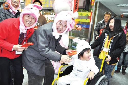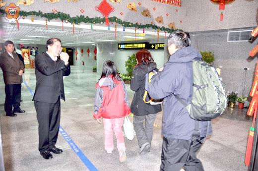 讓回家的路不再遙遠!這次春節輸運鄉親返金門過年,縣長李沃士許下:讓鄉親「回家」的路,不再遙遠的心願。昨天晚上,台北松山航站「金門縣鄉親服務站」的金門縣政府工作人員送走最後一班飛往金門的加班機,順利完成李縣長交付的任務。 統計三天來,松山航站「金門縣鄉親服務站」共協助三百二十六位鄉親辦理補位登機,返回金門與家人團圓共度春節。台中港金門快輪則送回一百七十七名鄉親。 春運這三天,金門縣政府協調民航局與三家航空公司,共加開二十一班台北往金門的加班機。松山航站「金門縣鄉親服務站」不似去年春運期間的人潮洶湧,反而有點冷清。縣府原與航空公司協調的多班「臨時加班機」,以及當緊急備案的一班遠東航空包機,都派不上用場。軍方待命的「五機二艦」,也沒機會啟動。 統計春運首日〈一月三十一日〉共有八十位旅客登記補位,五十九人登機返金。第二天〈二月一日〉有一百三十二人登記補位,一百零五人登機。第三天除夕〈二月二日〉有二百十一位旅客登記補位,一百六十二人順利登機返回金門。 昨天的聯合補位作業,比前兩天熱絡許多,清晨五時三十分不到,就有五位金門鄉親排隊等候登記補位,總算有一點「排隊登記」的氣氛。而後作業順利,每班機都補上數位旅客。 中午,交通部長毛治國再度至松山航站視察春運作業,並至「金門縣鄉親服務處」察看現場情形,他對今年沒有出現混亂狀況相當滿意。立委張慶忠、陳錦錠夫婦也至松山機場問候補位鄉親及慰問服務處工作人員。 今年松山航站「金門縣鄉親服務站」聯合補位登記作業,因事先準備周全,且旅客鄉親人數不如預期,三天作業相當順利。縣府台北服務處主任陳永富分析今年補位人數比去年少很多,主要原因可能如下:一、機位增加〈去年春節期間台金航線來回機位十二萬五千多,今年十二萬九千多。〉二、假期短、天氣寒冷,減少鄉親出門意願。三、陸客循小三通來台人數減少、台商赴大陸轉搭直航班機。四、分三梯次辦理加班機電話及網路訂位並清票奏效,旅客分散至各航班,未集中在最後三天出現機場。 多次到松山航站觀察輸運情況的交通部民航局副局長陳永賜也對今年的「冷清」狀況頗感詫異,因為不僅金門旅客補位稀少,澎湖、馬祖航線也一樣。他表示,將交辦所屬仔細分析研究,當作下回年節輸運計畫的參考。 今年縣政府大陣仗,由參議李增財率領十幾位各局室員工到台北松山航站支援「金門縣鄉親服務站」,而且備妥數量充足的便當、麵包、飲料,縣長李沃士並贈送年味十足的小風獅爺吊飾,鄉親對縣府準備周到反映良好,盛讚縣府團隊服務越來越好。離島澎湖、馬祖候機的民眾都很羨慕。 記者楊水詠/綜合報導 送虎迎兔慶團圓!昨天是大年夜,一波波的金門旅台鄉親搭機返鄉,與家人一起吃團圓飯和過年;金門縣長李沃士同金門航空站主任洪念慈,以及縣府多位一級主管在尚義機場入境大廳,迎接返鄉旅客,致送福袋、兔帽給大人小孩,歡迎返鄉過年和祝賀新年愉快。 為協助旅台鄉親返鄉歡度春節,縣政府除了啟動海路疏運包租「金門快輪」外,並透過交通部民航局協調各航空公司增開台金航線加班機,期讓金門旅台鄉親均能順利的返鄉,趕上回家和家人吃年夜飯及過年。 歡迎旅台鄉親返鄉歡渡春節暨慶祝旅運量突破209萬人次,金門航空站一連兩天舉辦送虎迎兔慶團圓活動;金門縣長李沃士和縣府社會局長方天吉、民政局長翁伸金、交旅局長楊鎮浯,昨天上午十時與金門航空站主任洪念慈,戴著可愛、應景又喜氣的兔帽子,在機場入境大廳迎接從台灣北中南返鄉的旅台鄉親,歡迎他們返鄉過年。 李沃士和洪念慈一一致送福袋給返鄉鄉親,以及送可愛的兔帽子給小朋友,向他們拜年及祝賀新年快樂。現場,並有中正國小學童表演精彩的舞獅,且敲鑼打鼓;另由航空站人員打扮的金虎和玉兔人偶,俏皮的向返鄉旅客辭歲和迎新納福,充滿年味,洋溢喜氣。 金門航空站去年旅客進出為二百零九萬四千六百二十三人次,創下自民國八十三年設站以來,單年旅客運量最高紀錄。因此,在小年夜和昨天除夕舉辦送虎迎兔慶團圓活動,慶祝設站以來單年旅客運量最高紀錄。 金門航空站表示,春節前疏運重點為由台灣返鄉至金門過年的旅台鄉親,春節後重點則是回到台灣上班、上學的旅客;為維持疏運秩序,六日至八日開設聯合補位單一窗口,提供便捷的補位服務。