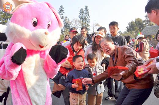 畜試所人氣旺李沃士發紅包向遊客拜年