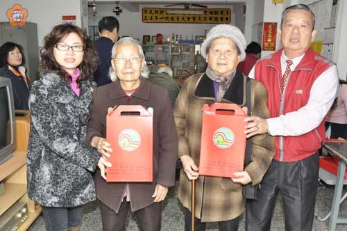 金沙鎮一百年春節敬老禮品昨在八個村里同步發放,鎮長陳昆第、鎮代會主席王秀玉到場關心,並向長者賀節。陳昆第表示,期藉以向長者致敬,並行銷金酒,讓全家用美酒慶團圓。王秀玉也表示,金沙鎮以此表達敬老之心,也代表縣府對民眾的照顧,祝福長者新年快樂。 金沙鎮公所自九十二年起推出敬老禮品,創地區之先例也讓各鄉鎮十分羨慕,紛紛起而響應。金沙鎮鎮長陳昆第表示,透過敬老禮品發放,向長者致敬,也傳達縣府的關懷,今年發放對象總數兩千一百八十五人,經過多年的經驗,和八個村里協調於昨天一日發放,過程順利。 金沙鎮鎮長陳昆第、金沙鎮代表會主席王秀玉,昨一同現身金沙鎮汶沙里辦公處,為長者服務,關心敬老禮品發放作業情形,長者頻頻點頭致謝,讓身為公僕的兩人內心十分滿足。 鎮長陳昆第表示,敬老禮品之發放已成為金沙特色,從禮品、瓷餅酒到實用的三瓶裝五十八度零點六公升金門高粱酒禮盒,內容不同但不變的是表達對長者的敬意,並且藉以行銷金酒,讓全家返鄉過年時,用美酒慶團圓。 鎮代表會主席王秀玉也表示,敬老尊賢是中國傳統美德,鎮代表會全力支持鎮公所之規劃,而更在縣府支持下讓禮品更順利發放,也代表縣府對長者的春節關懷,祝福長者新年快樂。