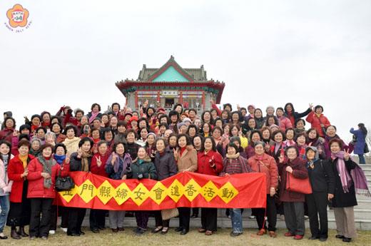 婦女會辦理歲末進香祈福活動,理事長許華玉昨日帶領金湖、金沙分會三百多位婦女伙伴,到西半島的廟宇進香拜拜,也參觀觀光景點,大家互道新年快樂。 婦女會於歲末新春之際,辦理進香祈福活動,日前,先安排金城、金寧分會的會員到東半島進香,也參訪觀光景點。昨日則安排來自東半島的金湖、金沙分會會員到西半島城隍廟等廟宇進香,也瀏覽了莒光樓等景點。退休教師陳世宙、莊招治夫婦、以及陳宗新、黃秀珍夫婦很熱心當解說員,讓婦女了解廟宇以及觀光景點的歷史源流。 進香團由婦女會理事長許華玉、金湖分會召集人黃秀珍、金沙分會召集人楊意金陪同,先參觀了軍事要塞的擎天廳,受到金防部政戰主任李智雄的歡迎和接待。 李智雄介紹擎天廳的鑿建過程,他說,擎天廳是位於太武山內,為一座長約50公尺、寬約18公尺、高約11公尺的大型禮堂,由駐軍以炸藥、簡易機械工具及雙手,於1963年在花崗岩開鑿完成,寬廣大廳卻無一根樑柱支撐,落成後由當時的總統蔣中正命名為「擎天廳」。 許華玉很感謝金防部的安排,讓很多未曾參觀戰地秘境-擎天廳的婦女姊妹,大開眼界,讚嘆人定勝天的軍事工程傑作。許華玉說,擎天廳,被譽為世界級的戰役景觀建築。她也代表婦女會贈送紀念旗,表達感謝之意。 許華玉也帶領婦女姊妹到城隍廟等廟宇燒香拜拜,為家人祈福,平安又順遂。 許華玉說,婦女會是個大家庭,透由活動,拉近各地婦女姊妹的情誼,也從活動中,彼此做分享,增進對於組織的向心力和情感。