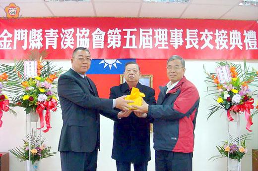 金門縣青溪協會昨舉行原新任理事長交接典禮,在青溪總會理事陳昆第的監交下,新任理事長翁杏仁正式就任,矢志將秉持「一日青溪,終身青溪」的職志,加強會務聯繫,落實工作經驗傳承,來發揮組織功能,同時結合社會資源來服務後備袍澤,連繫後備軍人情感,關懷照顧福利生活。 這項原新任理事長印信交接典禮,係於昨日上午十一時在金門縣後備服務中心舉行,典禮由青溪總會理事陳昆第主持,縣府民政局長翁伸金、金門縣後備服務中心主任蔡聰穎、金門縣退除役軍人協會理事長許績銘、婦聯青溪各鄉鎮姐妹、各鄉鎮後備輔導中心幹部等人均到場表達道賀之意,受到新任理事長翁杏仁及理監事的歡迎。 青溪總會理事陳昆第也應邀為該會原新任理事長印信交接監交,原任理事長蔡振來將印信交予新任理事長翁杏仁,再由縣府民政局長翁伸金代表李沃士縣長頒發理事長當選證書,在理監事的掌聲中完成交接儀式。 陳昆第致詞時首先感謝原任理事長過去四年來為協會所付出的努力,帶領幹部推展各項後備軍人服務工作,奠定良好基礎。同時賀喜翁杏仁接任理事長一職,並推介翁杏仁在擔任各項職務時,能於工作崗位上戮力以赴,認真負責,期許在其帶領下,各項會務工作能蒸蒸日上。 金門縣青溪協會新任理事長翁杏仁也感謝理監事及會員代表的支持與努力,讓各項會務在穩定中推展,他也希望持續在大家的支持協助下,帶領全體理監事為加強會務聯繫,落實工作經驗傳承,來發揮組織功能,服務後備袍澤事務而努力。 翁杏仁表示接任就職後,將秉持既有基礎賡續執行協會任務,協立後備軍人編組、教育、訓練等相關事宜,推動全民國防,掌握地方民、物力分布動態,協立動員整備工作。主動反映地方突發災變狀況,協助動員救災與重建工作。未來仍將配合政府的需要,發揮後備軍人的力量,推動全民國防動員後備袍澤,協立後備軍人動員、管理、服務工作。 會後並假雙喜餐廳舉辦聯誼餐會,凝聚後備向心力、溝通情誼,縣長李沃士、金寧鄉長陳成勇、金湖鎮長蔡西湖、金門縣後備服務中心主任蔡聰穎、金門縣退除役軍人協會理事長許績銘等人到場祝賀,場面溫馨熱絡。新任理事長翁杏仁有感該協會經濟拮据,率先捐獻十萬元充當基金藉此拋磚引玉,青溪總會理事陳昆第也捐出二萬元,台灣房屋金門加盟店也當場捐助五萬元,金門信用合作社理事主席陳松泉也贊助一萬元。翁杏仁也感謝各單位於活動期間出錢出力,讓典禮順利進行推展。