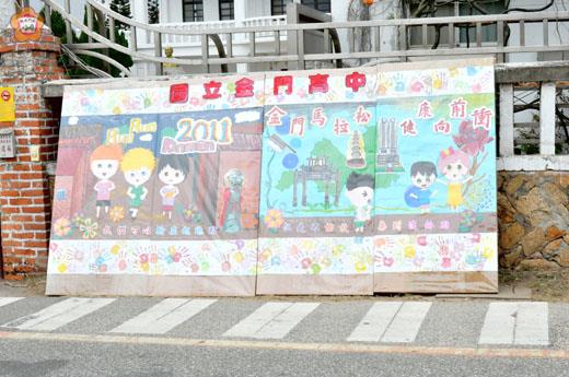 2011金門馬拉松賽將於今日早上八時在金門大學鳴槍開跑,為積極替參賽選手加油,彰顯最友善城市典範,展現熱情為活動打氣,由地區學校製作的金門馬拉松各校創意加油看板擺設於賽道路旁,發揮創意為競賽選手及活動加油打氣,呈現最快樂島嶼風華,儼然已成為金門馬拉松的一項重要特色。 金門馬拉松賽,縣府除了廣招各地路跑好手匯聚金門競技,更鼓勵民眾熱情參與比賽,各鄉鎮民眾也踴躍參與啦啦隊,為參與的選手加油,增添活動的參與感,而縣府教育局、縣立體育場及2011金門馬拉松賽籌備處更訂有創意加油看板競賽實施計畫,鼓勵各學校踴躍參與,達到「以打造城市品牌,結合運動休閒行銷觀光;提倡全民健身,推廣健康休閒運動風氣;讓民眾實際參與運動,落實運動健康生活;藉運動宣導環保觀念,提昇民眾生活品質;積極為活動打氣,熱情為參賽選手加油;以藝文形式參與,增進活動多元化魅力」的整體總目標。 教育局指出,金門馬拉松創意加油看板競賽活動分為國小組、國中組,各國小、國中一律參加,而觀摩組的金門大學、金門高中、金門高職則鼓勵參加,共襄盛舉,並已於14日依規定牢固安置於規定賽道地點路旁完畢。 根據主辦單位的規劃,2011金門馬拉松各校創意加油看板擺設地點,金門大學於校內賽道明顯處,金門高中、金城國中在金門高中校門前,中正國小、賢庵國小、古城國小三校在民權路學校圍牆邊,寧中小(國中、國小)、金鼎國小於頂林路安岐村段(南側靠紅綠燈附近),湖埔國小在湖下村慈湖路旁,古寧國小在學校西側圍牆邊,何浦國小、金沙國中、金沙國小、述美國小四校於高坑村高陽路邊,安瀾國小在陽翟村環島東路邊、多年國小在林務所附近路邊、柏村國小、金湖國中、金湖國小、金門高職四校在太湖路羅神父舊址前,而開瑄國小、正義國小在伯玉路開瑄國小學校邊,總共有23所學校參與創意加油看板製作。 而創意看板的題材,針對「為競賽選手及活動加油打氣。提倡全民健身,推廣健康休閒運動風氣。強調金門特色及景點,促銷金門觀光旅遊。宣導全民環保觀念,打造優資生活環境。」等內容自由發揮,盡情創意。 主辦單位也將聘請金門縣美術協會與地區知名藝文人士擔任評審,進行評比,評分的標準,其中,創意佔40分、構圖20分、色彩20分、整體配置20分。 至於獎勵方面,國小組取前3名,各頒獎牌乙面,第1名獎金5000元、第2名獎金4000元、第3名獎金3000元;取佳作3名,各頒獎牌乙面,各頒獎金2000元。國中組取前2名,各頒獎牌乙面,第1名獎金5000元、第2名獎金3000元。而觀摩組各頒紀念牌乙面。