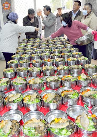 料羅灣社區老人供餐-由下而上實行成功的社區老人照顧服務,昨日上午吸引全縣社福相關從業人員到場取經。縣長李沃士表示,該服務值得推廣,鼓勵有意願之社區投入,社會局導入資源,藉此作為媒介,結合之志工服務愛心及社會資源,落實長者照顧與健康關懷,實現福利社會,讓鄉親受到良好照顧。 料羅灣社區發展協會,運用回饋金推出老人供餐服務,讓縣民十分羨慕,也吸引公部門的關注。縣長李沃士昨日上午特別到場瞭解供餐狀況,社會局局長方天吉率領相關業務承辦人、五鄉鎮公所社福業務作業人員等,到場觀摩學習由社區推起的老人照顧服務,盼能推廣給全縣適用之社區辦理。金湖鎮鎮長蔡西湖、料羅里里長謝慶閣也出席參加。 金湖鎮料羅灣社區發展協會理事長謝水來簡介供餐服務指出,料羅里六十五歲以上人口,佔總人口數之十一點七一。伴隨社會結構改變,年青人口外流謀生,社區出現人口老化現象,相對的長者之飲食和健康成為社區重要服務,故經過社區理事會決議,提擬規劃案,申請港務處回饋金補助,九十九年七月一日起推出供餐服務,對象為料羅灣社區六十五歲以上老人,供餐時間為周一至周五之中午。該服務秉持使用者付費原則,每餐費用六十元,社區運用回饋金補助三十元,搭伙的長者只需付三十元,百歲人瑞免費,菜色四菜一湯,依署立金門醫院營養師之指導,採三低一高之健康飲食原則,每月登記繳費,開辦以來人數逐漸成長,民國百年起服務擴及料羅新村六十五歲長者,人數也成長到九十人。 謝水來也表示,供餐服務推出後獲得廣大迴響,也引起各界關注,社區的老人每日十一時至十一時三十分到場等候,彼此相聚交談互相關懷,提高社區活動中心的使用率,而社區志工也藉由送餐時刻,關懷長者之健康及生活起居;人力方面僅有一人按日計酬以回饋金支應,其餘皆為社區志工輪流排班服務,盼能獲得更多資源協助。而社區僅是以實際行動,用愛心和關心為老年人服務,期藉此拋磚引玉,在政府協助下,擴大成全面性,讓金門的老人們都能享受社會的照顧,實現老有所終的大同世界。 昨日現場有許多民眾排隊等餐,六十七歲的陳諒說,十月起搭伙,天天都新鮮好吃。吳紅馳則說,菜色豐富又營養,一餐可當兩餐用。八十一歲的陳連瑞目前獨居,他說,該服務真好,無暇領餐者還有志工協助。而現場長者滿意的笑容以及美味的中餐,讓所有人在參觀後,投以羨慕眼光。 縣長李沃士表示,從長者的笑容和反應,可以知道服務之效能,這是成功的老人照顧,值得推動,也鼓勵社區投入,後續期待社會局資源導入,社區結合志工人力凝聚服務熱忱,以此作為媒介,結合愛心與資源,讓長者受到良好照顧,實現福利社會。
