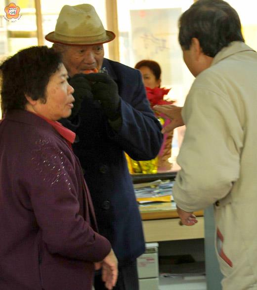 張建騰/圖文 拔齒,怒目,拍桌,開罵,為爭一瓶酒! 一位老榮民在六度不到的低溫下,為馬拉松選手加油了幾個小時,卻沒有得到他應得的紀念酒(可能是認證牌遺失了或是有其它原因),十分不快,因此到金湖鎮公所找承辦人理論,還不時拔下假牙,不惜一戰。經眾人力勸,才平息了一場怒火。 在場的人員表示,每年都怕這樣的一場馬拉松,因為總有些事情擺不平,希望在紀念品的發放,能有更好的對策。今年限年齡又限額度的方式,弄得人人灰頭土臉。 這次發放禮品,按規定老人可以拿酒,小孩可以拿面膜,但有些民眾堅持要小孩拿紀念酒,因而把工作人員大罵一頓;而且有鎮民代表帶頭帶著小孩子拿酒。