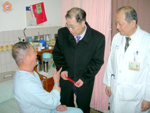 金門縣政府社會局昨天展開一百年春節赴台慰問在教(療)養院留居照護的金門籍鄉親行程。縣長李沃士也撥空一同慰問在台北馬偕紀念醫院及榮總住院的鄉親,並贈送每人一千元慰問金。 李縣長昨日早上由衛生局長陳天順、馬偕醫院院長蔡正河等人陪同,探訪慰問住院的金湖鎮新市里李姓鄉親及金寧鄉王姓鄉親,祝福他們早日康復,返回金門過年。下午,李縣長與衛生局長陳天順、社會局長方天吉、社福課長許美鳳等人,一同至榮總病房探望李姓、何姓、兩位陳姓等四名金門鄉親。其中八十三歲的李姓鄉親是李縣長的「叔公」,他看到李沃士縣長現身病房非常高興,拉著李縣長的手一直唸著「想回金門過年」,李縣長交代隨行的縣府台北服務處主任陳永富協助安排軍機返金。 八十歲的何姓鄉親擔心醫師說他必須開刀治療,他怕年紀大了,身體承受不了。李縣長安慰他,安心就醫,相信醫師會作最好的安排。 陳姓女住院鄉親因化療顯得瘦弱,縣長很關心,傾身細聽她說話,要她多吃點東西、增加營養,勇敢對抗病魔。 另名李姓鄉親病況好轉,醫師表示近日可辦理出院回家療養。李縣長祝福他,李與家屬連聲感謝。 由於縣長另有行程,他交代陳永富主任代表他慰問其他住院鄉親,並贈送慰問金。 方天吉局長等一行人隨後轉往衛生署八里療養院探望鄉親。傍晚再與李沃士縣長會合,下午搭乘五時三十分飛機飛抵花蓮,準備今(11)日至行政院衛生署玉里醫院及行政院國軍退除役官兵輔導委員會玉里榮民醫院等機構慰問縣民,昨日晚間並與花蓮縣金門同鄉會幹部等人餐敘聯誼。 縣府社會局表示,此次行程,藉與馬偕醫院及榮民總醫院業務協談機會,慰問住院縣民三十人,每人致贈慰問金新台幣一千元,11、12日還將慰問分散在14個教療養機構的56位縣民,包括恆安老人養護中心、八里療養院、仁濟療養院、樂生療養院、溫昕護理之家、松德醫院、桃園縣心燈教養院、愈健養護中心、龍祥護理之家、龍祥長期照顧中心、仁愛之家、居善醫院、花蓮縣署立玉里醫院、玉里榮民醫院等。 社會局表示,金門縣境內目前因僅有一家老人福利機構、二家身心障礙機構,礙於內部設施設備、醫療專業人力不足,尚無法完全滿足縣民實際需求,或有其家屬已遷居台灣,為方便照顧探視,選擇進住台省社會福利機構。此次慰間行程,除各致贈每人慰問金新台幣二千元,也希望藉由慰問瞭解縣民在縣外安置生活起居情形。 此外,縣長李沃士昨晚特別安排與花蓮縣金門同鄉會幹部等人餐敘聯誼,餐會中李縣長特別向鄉親報告重大縣政成果,他表示,就職一年來由於縣府與中央保持良好互動關係,並承總統馬英九對金門建設之大力支持,縣府團隊積極努力,各項縣政已有顯著績效,如金門大橋終於在一月九日動土,工程預定於民國105年完工。多年來為縣民詬病之醫療問題,承監察委員周陽山協助,中央已投資十二億元興建綜合醫療大樓。金門技術學院已於九十九年改制為金門大學,本學年起先開放七十位陸生來金就讀。縣府爭取四十億工程款,辦理金門機場及水頭碼頭擴建。往年每逢霧季,經常霧鎖金門,希望透過這次的機場設施設備改善,將起飛能見度標準從九百公尺逐步縮小為八百公尺,使縣民對外交通更為便利。為使縣民順利返鄉過年,春運期間已協調國防部五架軍機待命支援。此外,為積極發展觀光,爭取大陸開放觀光客來金自由行,位於機場前的工商綜合區BOT案即將於一月二十四日動土。金門即將有五家免稅商店,目前已有一家開始營業,外商看好金門發展潛力,紛紛至金門投資,金門近一年來地價幾乎漲一倍,金門未來發展榮景可期等。 李沃士表示,為促進金門發展,希望鄉親多加鞭策,提供興革意見,讓縣政推動更好,讓金門建設得更好。 縣府此次的慰問活動,今(11日)將馬不停蹄探視在玉里榮民醫院、玉里醫院療養的金門鄉親。然後趕回新北市探望在療養院的鄉親。12日則有桃園縣探訪療養鄉親行程。預定13日探視在台北立松德醫院療養的金門鄉親後,結束為期四天的慰問行程。
