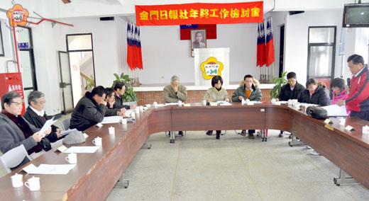 本報於昨日召開年終檢討會議,社長黃雅芬感佩團隊共體時艱,也期盼同仁團結一致,拿出專業,展現敬業精神,隨時做好準備、迎接挑戰,報導社會光明面,反映民情,打造優質的金門日報。另外,本報致力數位化工作,未來上網也可以看到完整版的實體報紙全樣,敬請鄉親期待。 本報(金門日報)昨日下午二時起召開九十九年度年終工作檢討會議,由社長黃雅芬主持,縣府行政室新聞課課長傅仰土列席指導,員工出席參加就年度各項工作進行意見交換及問題研討。 由於本報金沙分銷處,送報員因身體微恙以致過渡期出現派報問題,為此,同仁翁春松建議,報社是否可以活用十七位外調人力,規劃區域自行送報,以因應緊急突發狀況。為此,社長黃雅芬表示,此建議將作為外調人力屆滿後,後續規劃之參考。 最後,黃社長也表示,去年可謂報社最艱辛的一年,感謝全體同仁的努力及辛勞。期許團隊更加團結一致,展現專業、敬業精神,隨時準備好迎接挑戰,打造優質的金門日報。 記者陳麗妤/金沙報導 年終農試所回顧九十九年工作內容,一百年將更加努力,將農業導入觀光概念;並要透過小麥查報小組,確保在地保價權益。建設局局長葉媚媚表示,一條根特產已在觀光市場佔有一席之地,應輔導商家堅持用在地原料以提昇競爭力,而契作證明權責應釐清,以免影響農民權利與義務。 金門縣農試所昨日上午十時召開九十九年度年終工作檢討會議,由代所長陳佳結主持,各課室進行工作報告,建設局長葉媚媚率課長李廣榮列席指導,與同仁就工作內容交換意見。 葉媚媚表示,金門一條根從零到已具市佔率,如今面臨價格低農友種植意願低;價格高商家不願收購之窘境;應思考如何輔導堅持採用在地生產原料,否則面對他縣市也推出相同產品,競爭力何在。 另外,農友契作證明問題,責任應釐清,以免造成村里長負擔並影響農民權利義務;小麥契作查核要落實才能確保在地保價權益;安全、有機農業是國際趨勢,應輔導農友特別是水源地上游,降低農藥使用率,以免影響生態及水資源。 陳佳結表示,盼團隊一百年更加努力,將農業導入觀光概念,積極推廣行銷。逢農試所六十週年,希望能夠規劃慶祝活動,展現金門六十年來的農業發展。 記者陳麗妤/金沙報導 林務昨九十九年度年終工作檢討,一百年期許能結合觀光發展及縣府施政,從林區到鄉鎮之美化都有具體作法,讓金門打造成美麗國際島嶼。建設局局長葉媚媚表示,林業保育極為重要,清除入侵植物更要保護原生植物及林木永續生存。 金門縣林務所昨日上午九時起召開九十九年度年終工作檢討會,由所長楊慧明主持,各課室進行年度工作報告,縣府建設局局長葉媚媚率課長李廣榮列席指導提出建言。 葉媚媚表示,一百年度農委會補助相關計劃要按期程積極辦理。建國百年,應發展結合觀光發展和縣政主軸之重點。 另外,伴隨地區商業發展,道路行道樹、招牌相衝突,林木永續或商業發展何者為重,值得探討。為此,葉媚媚勉同仁站在為民服務立場,協助修剪,以免引發紛爭。而伯玉路行道樹出入缺口應盡快規劃執行;入侵植物,除分年、分區清除外,更要做好原生植物及林木永續生存。 記者李金鎗/金城報導 大同之家昨日召開九十九年度年終工作檢討會,主任陳大鵬勉勵夥伴們應持續積極各項照護服務工作,縣長特別關心照護人員辛勞,也指示與核定對薪資及福利之提升方案,以留住專業讓就養長輩獲得更妥善之照顧。並期勉共同發揮「以長者為尊、以服務為榮」的服務精神,來做好份內的服務工作,讓老人家能安享晚年生活。 大同之家99年度業務推動績效卓著,榮獲全國三大獎項,主任陳大鵬昨日主持年終工作檢討會,除感謝與肯定夥伴之工作績效外,並與員工分享這份榮耀。 大同之家99年度業務推動績效卓著,榮獲全國三大獎項,分別是「養護中心興建工程」獲公共工程委員會99年金質獎建築類「優等」。「育幼組」及「安老組」在全國年度育幼機構及老人福利機構評鑑結果,均獲得「甲等」之佳績。昨日在年終檢討會中,主任陳大鵬除感謝與肯定夥伴之工作績效外,也再三鼓勵同仁:照護服務是件辛勞的工作,但也是值得我們體驗與學習修心(身)、養性的最好機會,照護好長輩及家童是一份責任,但我們的「態度」與「用心」將是會反映在所有住民、家屬以及社會的感受與評價上,勉勵夥伴們繼續秉持積極的照護工作,發揮「以長者為尊、以服務為榮」的服務精神。 陳大鵬指出,李縣長相當重視大同之家服務亟需政府照顧的老人及小朋友,各項業務工作及經費都予支持,希望藉由政府的力量來關懷這些弱勢鄉親。並表示,年度推展許多工作,如福田院區增加床位,爭取中央經費修繕設備,二組在機構評鑑獲得甲等,養護工程金質獎優等,都是同仁努力所呈現之績效。未來應加強與老人及幼童院外家庭的雙向互動,讓家屬也能有所配合,透由雙向的聯繫與服務,來落實對老人與小朋友的照顧服務。