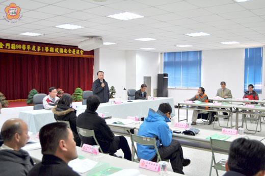金門縣警察局為有效維護轄區校園安全,及建構校園安全防護網絡,特別於昨日假警察局三樓會議室辦理「九十九學年度第一學期校園安全座談會」,探討校園安全維護之重性,經過一場熱烈討論後,校方代表更能瞭解警方之作為,對警察用心深受好評。 金門縣警察局舉辦地區校園安全座談會昨天下午在警察局召開,局長蔡蒼柏主持,金門大學及地區國中小各級學校校長或代表進行面對面意見交流與座談,並就當前各校學生的問題,深入討論及研究對策。 金門縣警察局局長蔡蒼柏主持時表示,所謂校園安全,顧名思義是指師生可以免於恐懼、可以安全學習與教學的地方,應藉由落實校園安全維護工作,避免發生毒品、不良幫派勢力入侵、校園暴力或竊盜等危害安全事件發生,以營造安全、健康校園環境,確保校園安全與安寧,並提供學生優質學習成長環境。這次座談會將採雙方溝通方式,由各學校代表提出寶貴的意見,分局各業務單位將針對各學校代表所提出的問題,適時適宜的反映及處理。 蔡蒼柏表示,若校方或警方發現相關校園暴力及霸凌事件問題,雙方將主動介入輔導並約制行為人,並透過家長協助,即時有效處理校園危安事件,有效防制少年犯罪,達成健康、友善及防範之三贏目標。 轄區各級學校代表肯定並感謝警方針對校園學童上、下學安全維護及學校附近道路交通安全維護等措施。有關校園安全防制措施,希望各派出所務必盡全力為校方解決問題及加強校園內安全維護的工作。 局長蔡蒼柏針對各校提出的請求意見,立即裁示並責成在場列席的各分局長依據所轄學校進行全力的協助,務使學校的教育搖籃獲得安全無虞的成長空間。