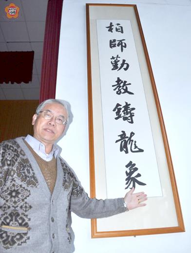 柏村國小校長陳為學說他有一個「為伊消得人憔悴」的「不良嗜好」;他所謂的「不良嗜好」就是撰擬「冠名聯」。 為伊消得人憔悴,學彼嵌聯自陶然!「冠名聯」又稱「人名詩鐘」或「嵌頂聯」,特徵是在撰寫對聯時,嵌入特定的文字,例如人名、地名等。陳為學雖然因此而「為伊消得人憔悴」,卻又是「衣帶漸寬終不悔」。 柏村國小目前正在舉辦「柏村師友書法展」以及為期七天的書法教育週;校長陳為學所做的冠名聯也在展示之列。其中有一幅對聯為「『柏』師勤教鑄龍象;『村』童奮進陶聖賢。」-由陳為學撰製,由書法家陳財發書寫。陳為學還發表了「學習冠名聯的心路歷程」。 陳為學曾在述美國小擔任校長八年,期間每逢學校的教職員工有人生日,他就會寫一對冠名聯相贈;轉任柏村國小之後,也一一為同仁做了冠名聯;例如:「『高』尚志性勉雛鳳,『馨』和校園勵己心。(贈陳高馨)」「『淑』女杏壇立良範;『芬』芳庠序傳樂章。(贈黃淑芬)」。 陳為學把自己所做的聯對分為「公職政事類」、「教育師友類」、「社會賢達類」、「廟祠新廈類」、「軍旅酬酢類」等。 「公職政事類」撰贈的對象包括福建省政府主席薛承泰、金門縣長李沃士……。例如:「『承』運順天出八閩;『泰』德應瑞頌萬黎。」「『沃』育百姓,使民以時;『士』來萬方,用吏唯才。」 「教育師友類」撰贈的對象包括銘傳大學應用語文學院院長陳德昭、雲林科技大學校長楊永斌……。例如:「『銘』篆聖言,『德』似春煦;『傳』揚師道,『昭』如秋暉。」「『永』續賢傑偉業,博學獨鍾雲林;『斌』和師友碩績,慧識譽滿浯洲。」 「社會賢達類」撰贈的對象包括跆拳道國手蘇麗文、作家黃克全……。例如:「『麗』質無雙耀京奧;『文』武並美光體壇。」「『克』紹箕裘,『全』新偉構;彩敷驛旅,華美雅築。」 「廟祠新廈類」撰贈的對象包括峰上天后宮、陳景蘭洋樓……。例如:「『天』施甘雨涉川利;『后』顯神功護國靈。」「『景』物醉客,懷古思今發奇山;『蘭』樓聽濤,靜心澄慮寄雅莊」。 「軍旅酬酢類」撰贈的對象包括陳忠圓(國軍將級人員)夫婦、張景陽(國軍將級人員)。例如:「『忠』勇為先,『圓』緣星照;『鵬』程發軔,『如』意吉祥」「『景』運高照率勁旅;『陽』光普施御王師」。 為伊消得人憔悴,學此嵌聯自珍惜!根據陳為學的自述,他最初接觸冠名聯,是國中時代在《嘉女青年》校刊裡,看到了嘉義女中教師高明誠指導學生們所做的人名詩鐘,從此就迷上這種文體,甚至到了「衣帶漸寬終不悔」的地步。 民國六十一年,他在金門高中畢業前夕,曾以全班四十個同學為對象,一一寫成冠名聯。九十一年,他在三峽國家教育研究院接受校長儲訓時,曾把位輔校長和四十位同學的名字,都做成了冠名聯。到述美國小和柏村國小服務之後,全體教職人員的名字,也都成了製作冠名聯的對象。 陳為學在「學習冠名聯的心路歷程」中說:「對每一副冠名聯,我都敝帚自珍……。如此高調自彈、孤芳自賞,見笑方家,自屬預料中事,理由無他,只想聊備一格,引為談助……。」